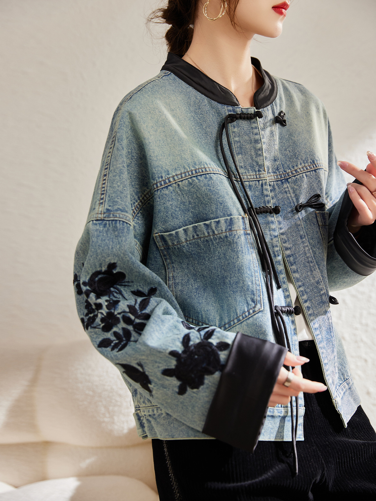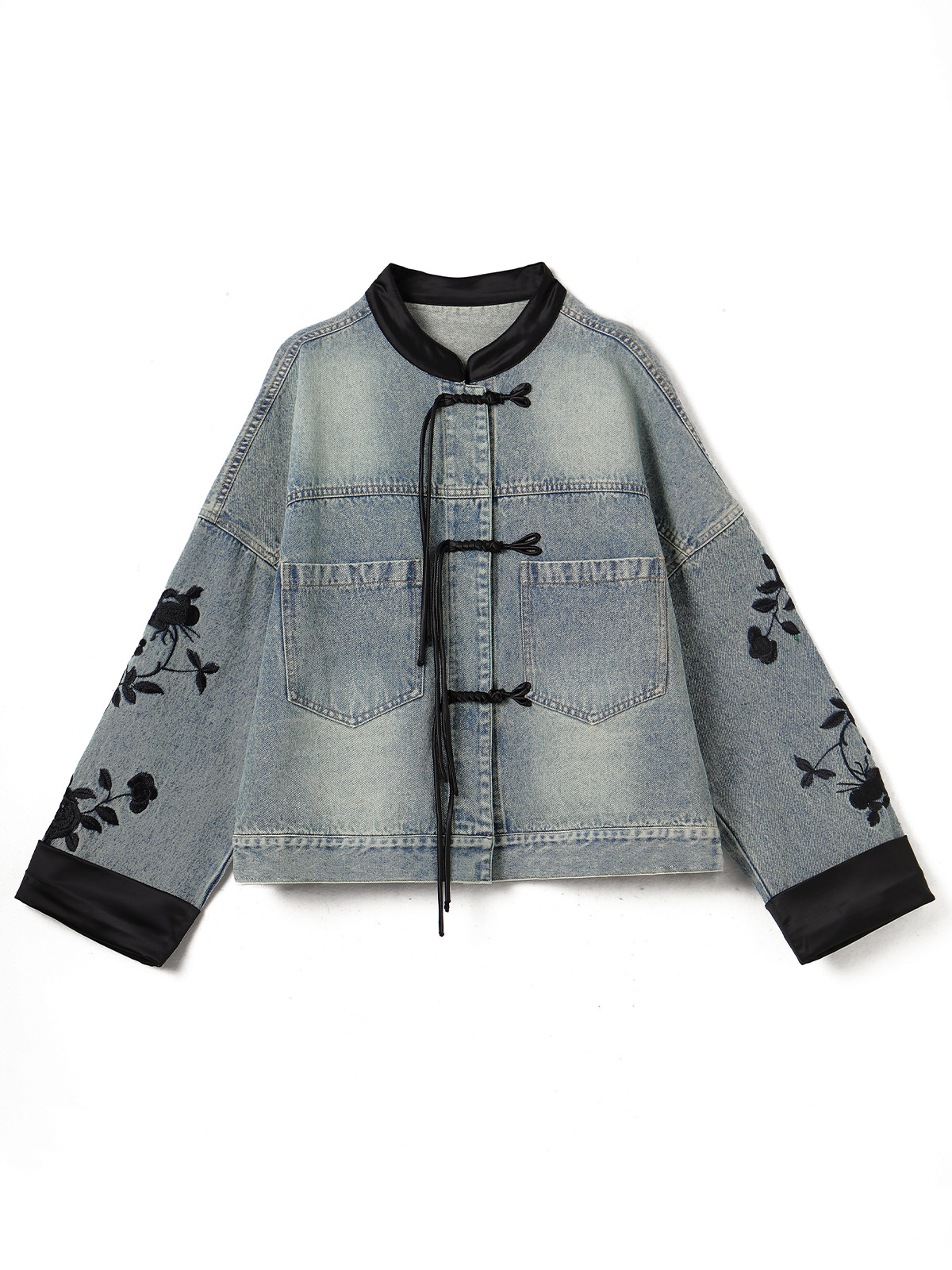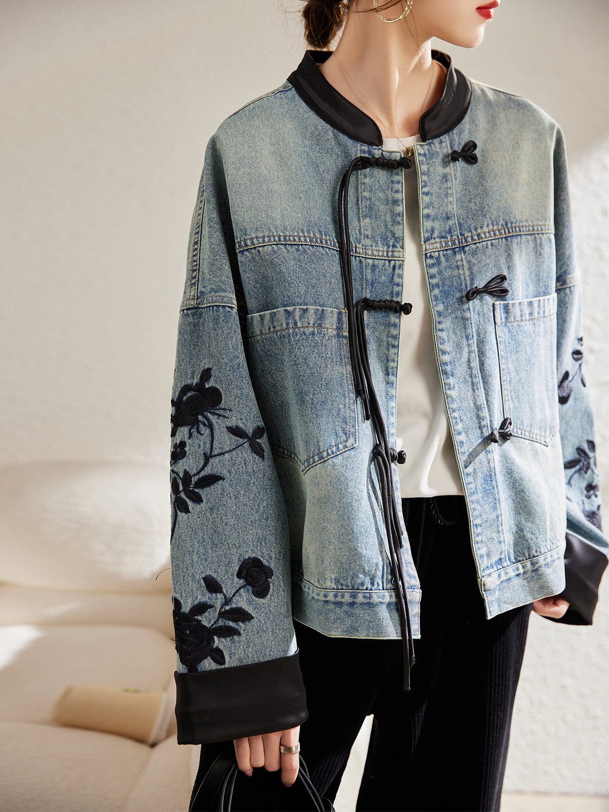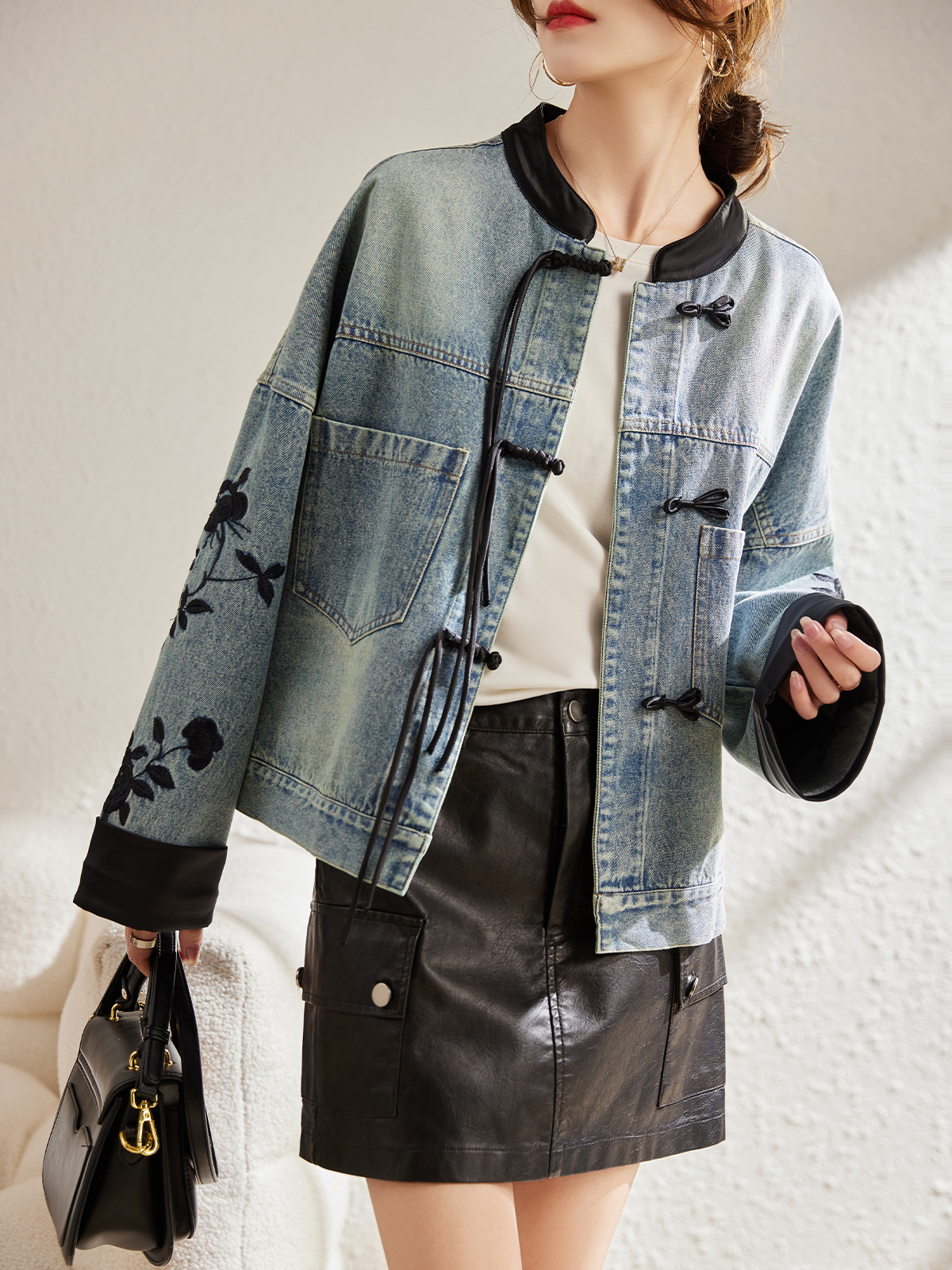 | nameOriginal | New Chinese style Denim coat women's spring and autumn clothing 2024 New European loose fashion design sense western style national style top |