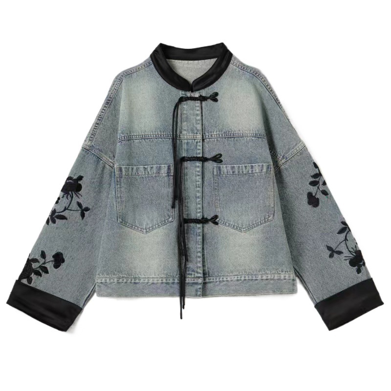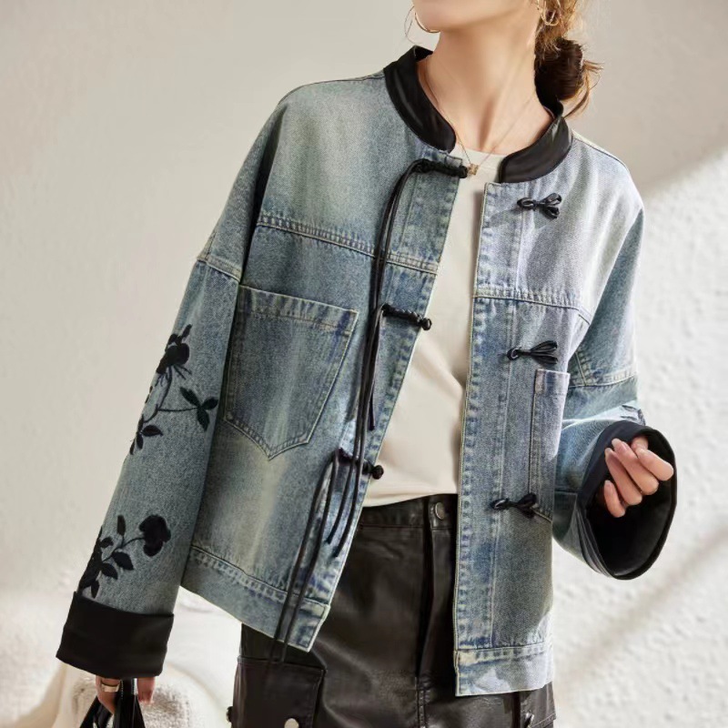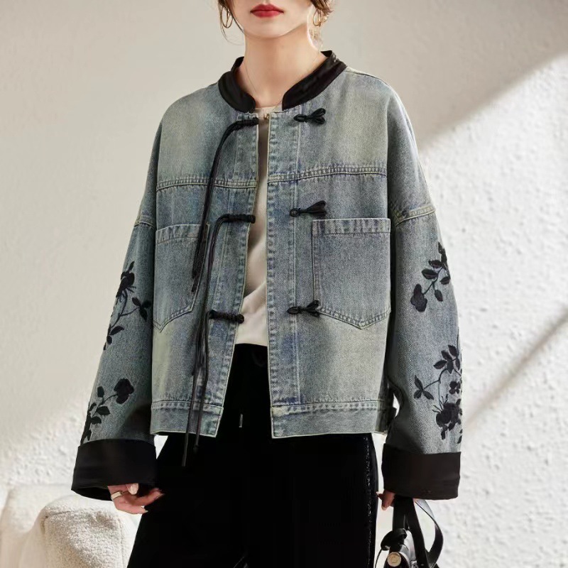 | nameOriginal | New Chinese style Denim coat women's spring and autumn clothing 2024 New European loose fashion design sense western style national style top |