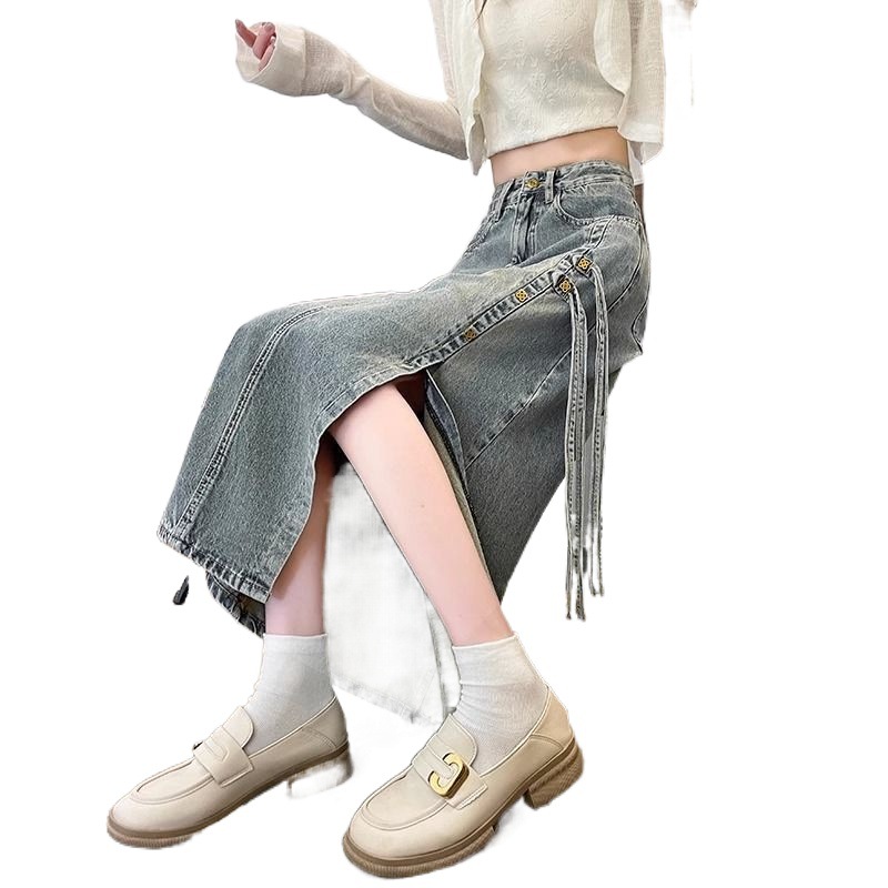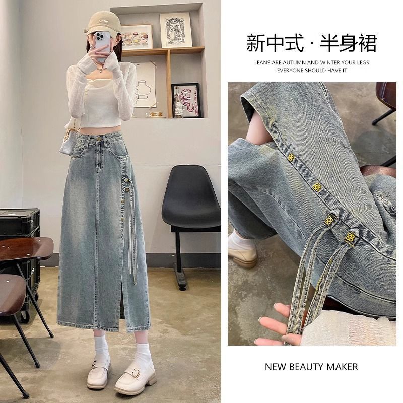 | nameOriginal | New Chinese Style Denim Skirt Women's 2024 Spring New Style National Style High Waist Split Mid-Length Skirt |