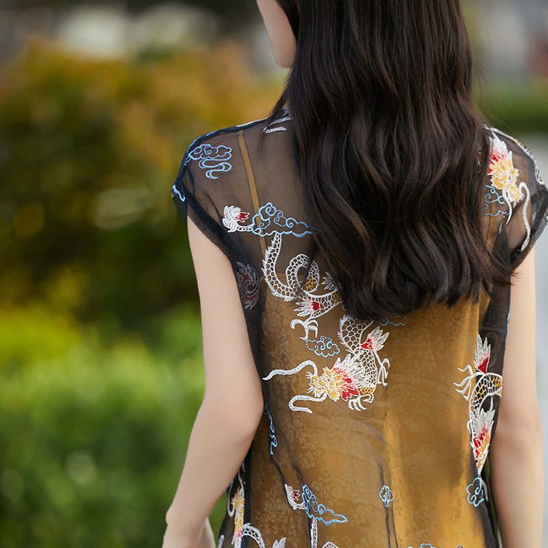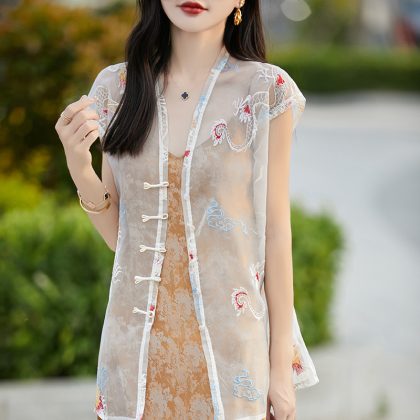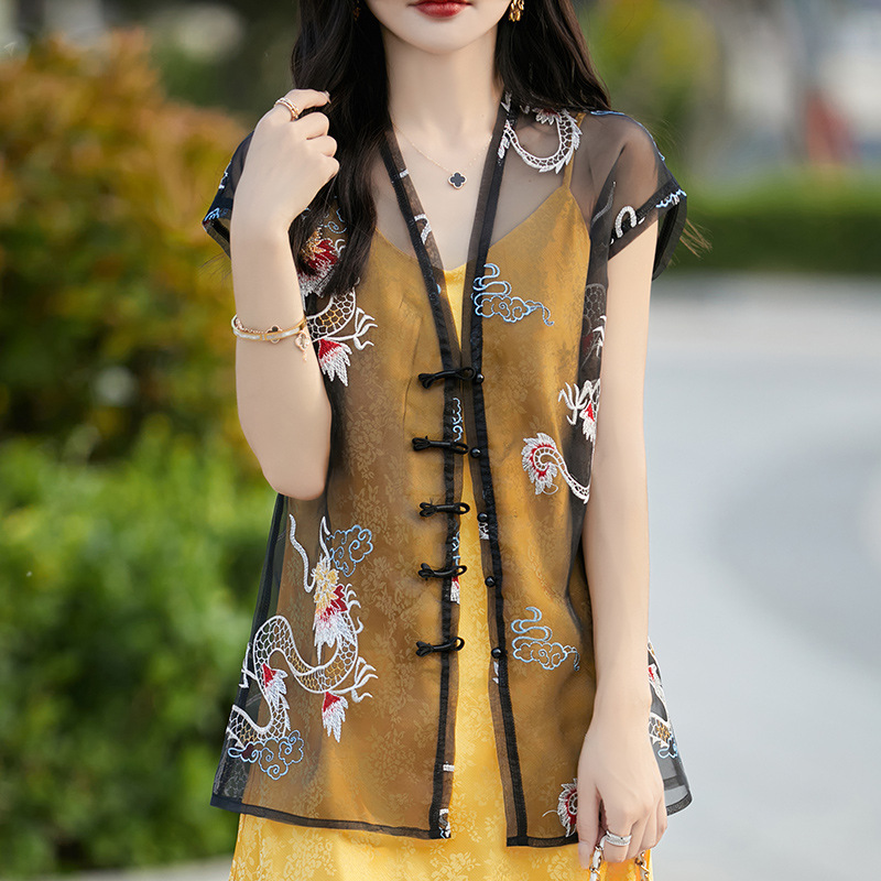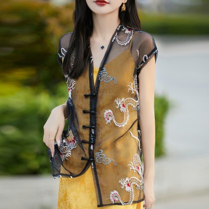 | nameOriginal | New Chinese-style Dragon Embroidery Guofeng Organza Vest Women's Perspective Blouse Fashion Mid-length Outer Cardigan Vest |