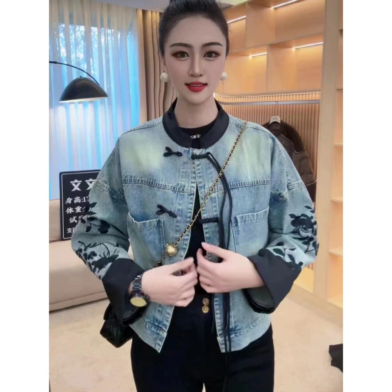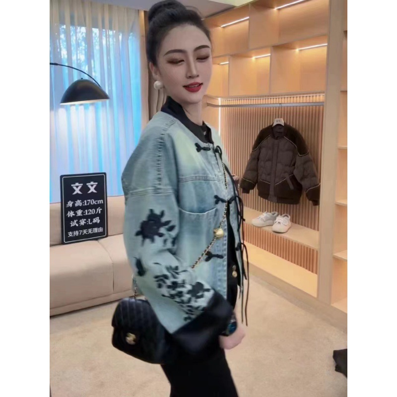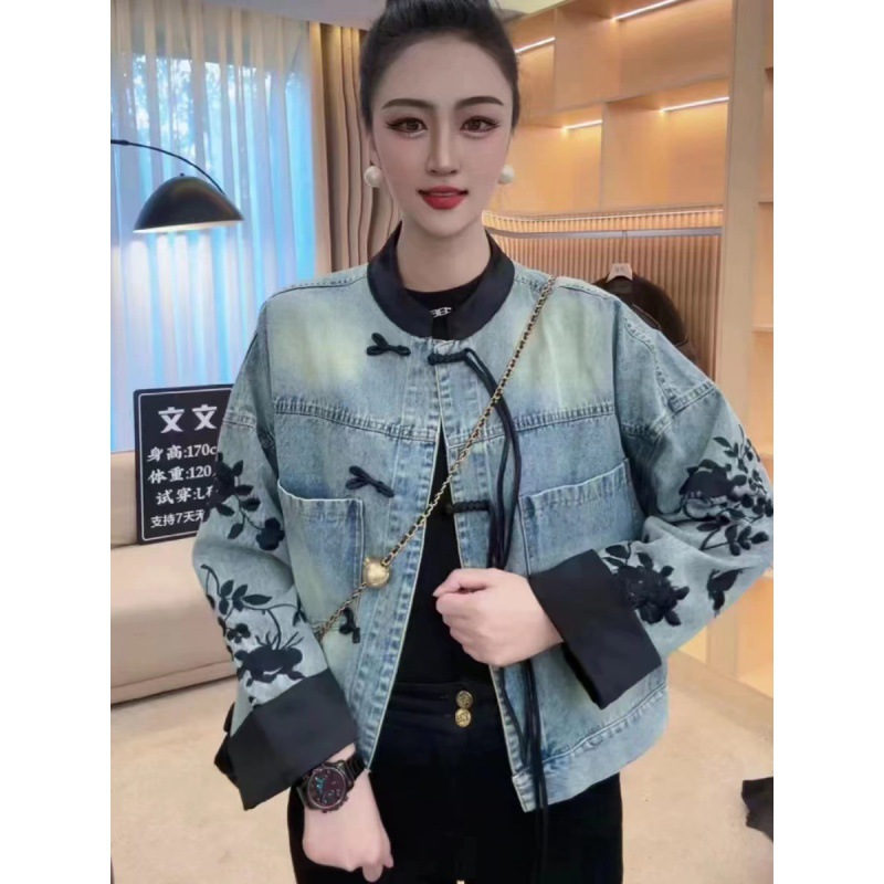 | nameOriginal | New Chinese Style Early Spring 2024 New National Style Vintage Buckle Denim Jacket Design Embroidered Leaves Printed Top |