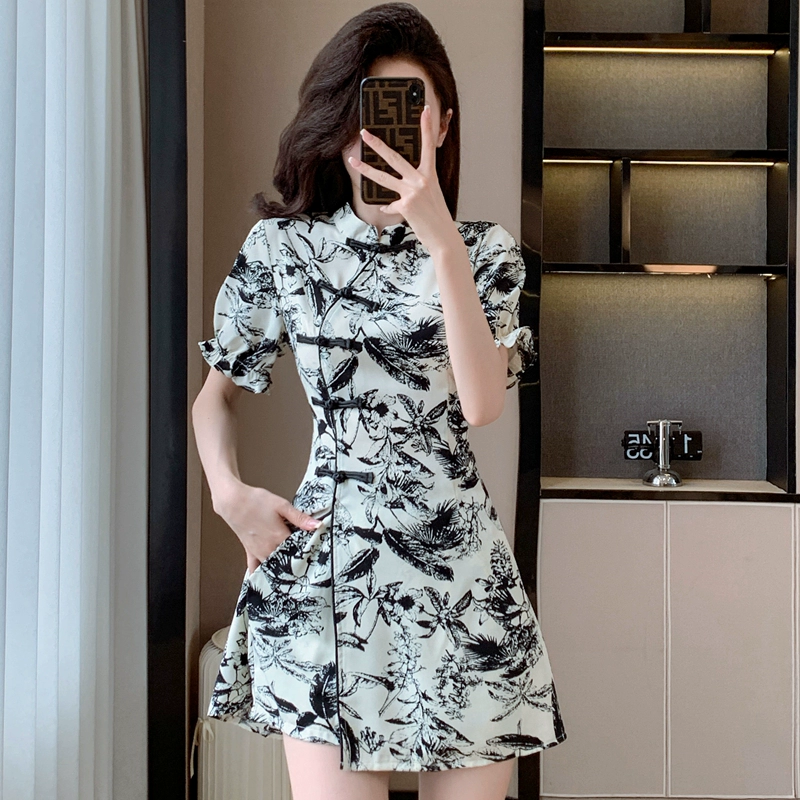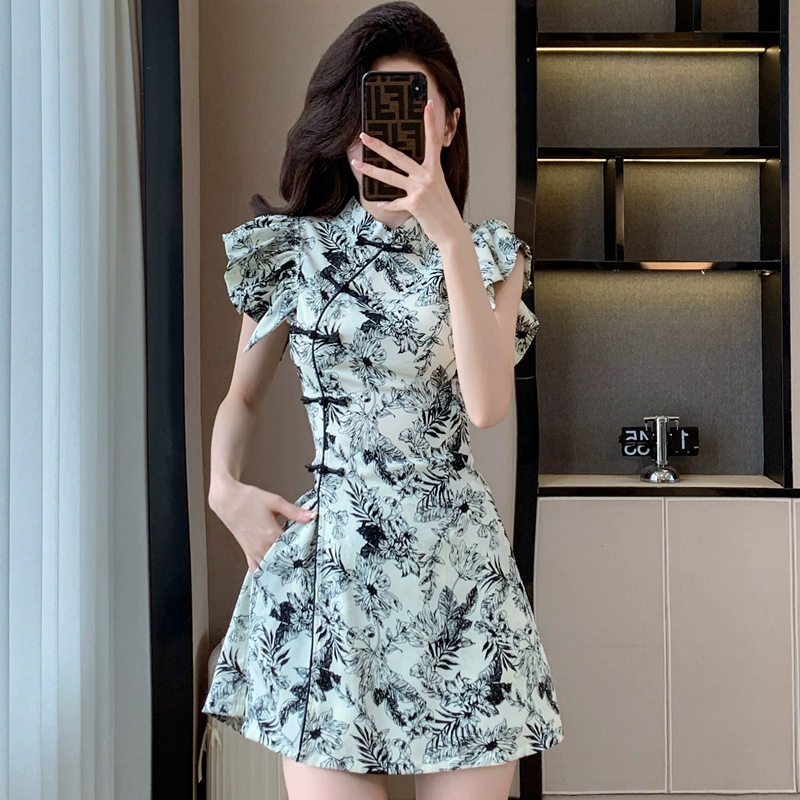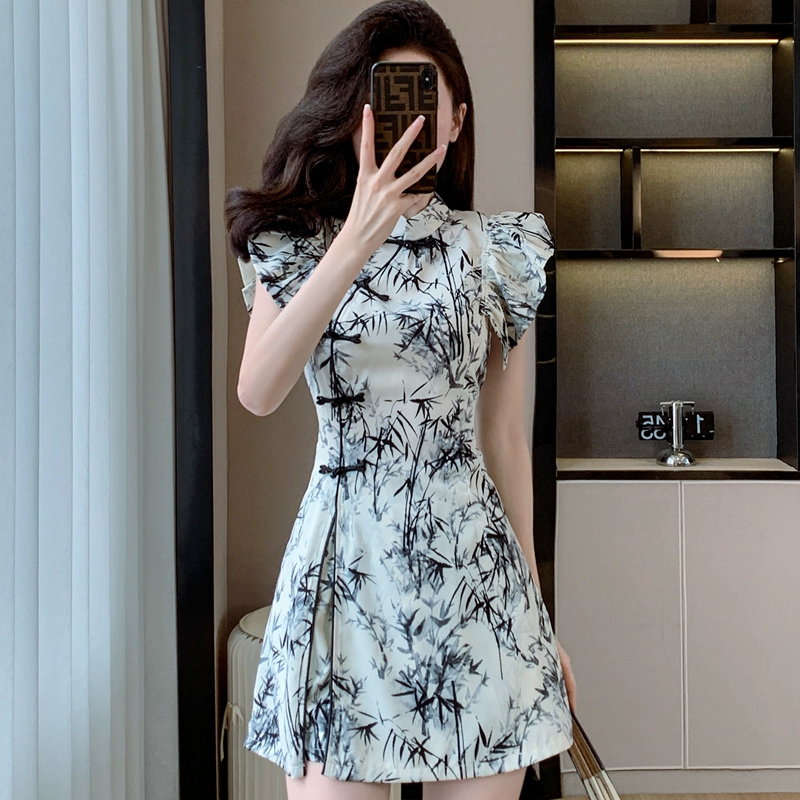 New Chinese style European style slit tops and shorts with buckles