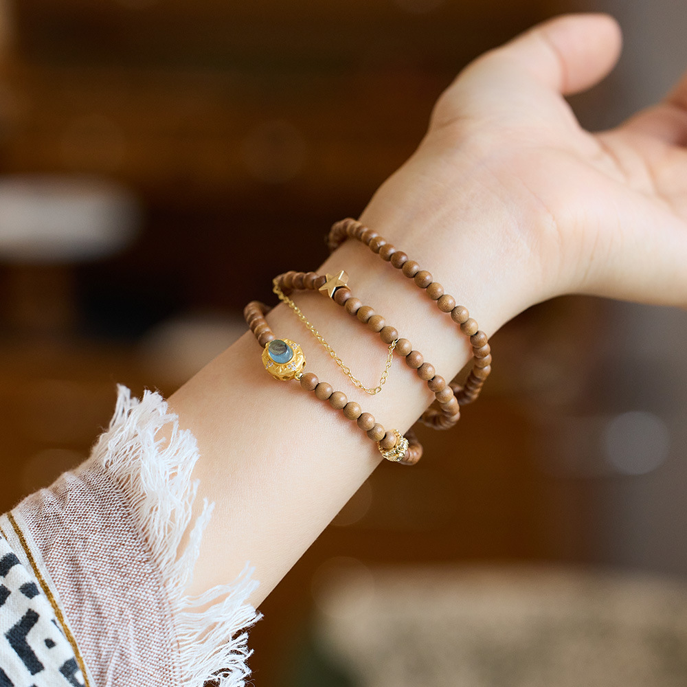 | nameOriginal | New Chinese style exotic princess natural 4MM Indian old sandalwood bracelet female Aquamarine star Moon stacked bracelet wholesale |