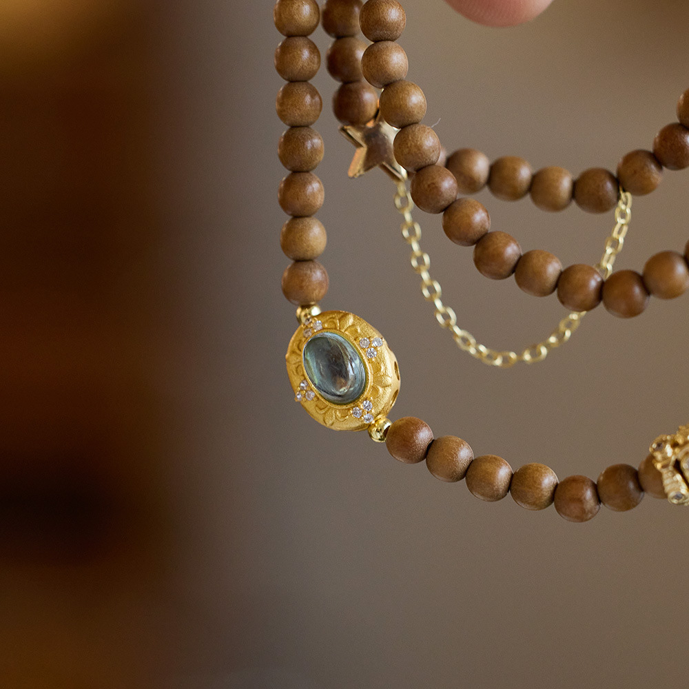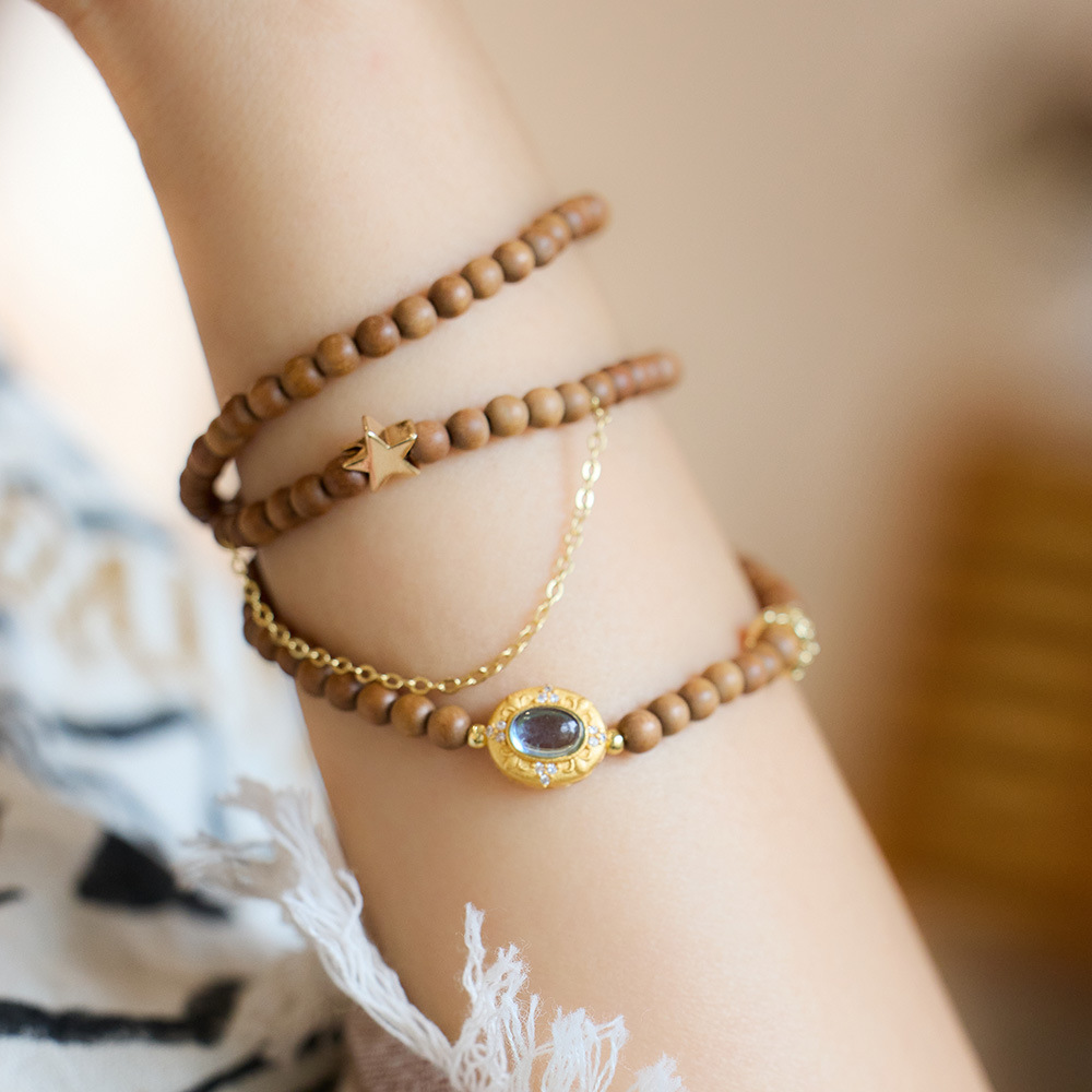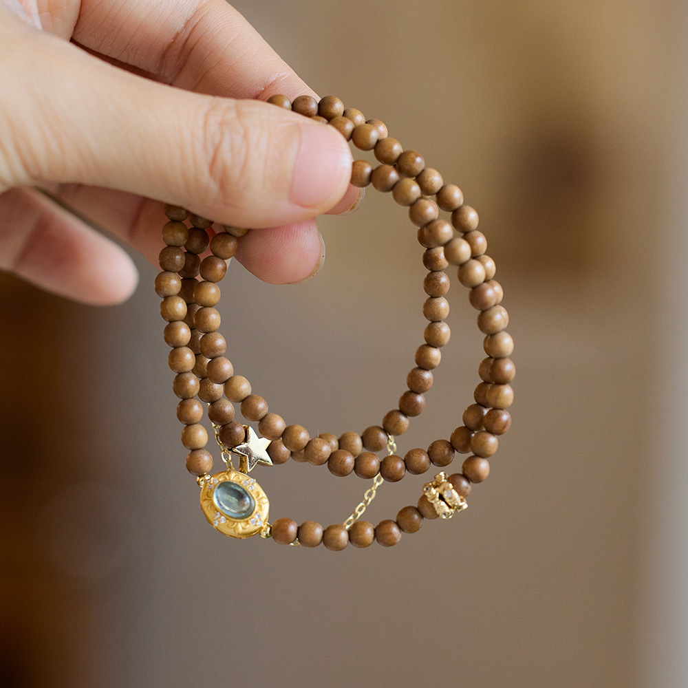 | nameOriginal | New Chinese style exotic princess natural 4MM Indian old sandalwood bracelet female Aquamarine star Moon stacked bracelet wholesale |