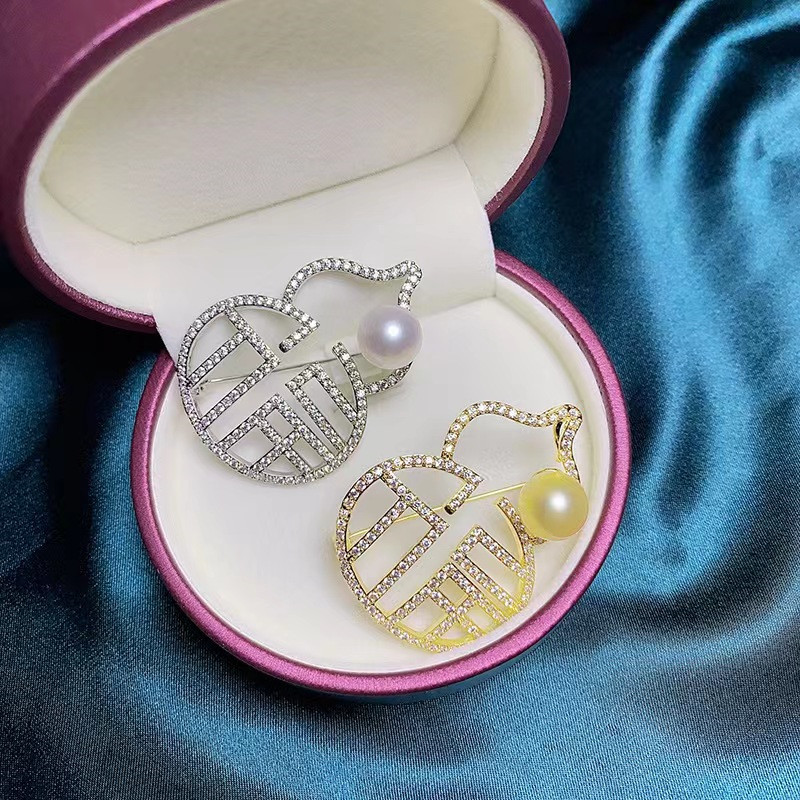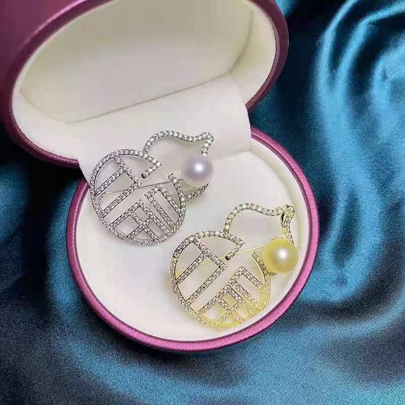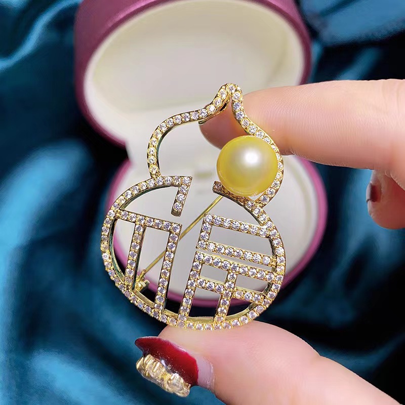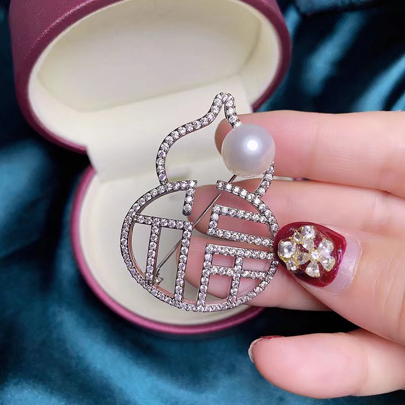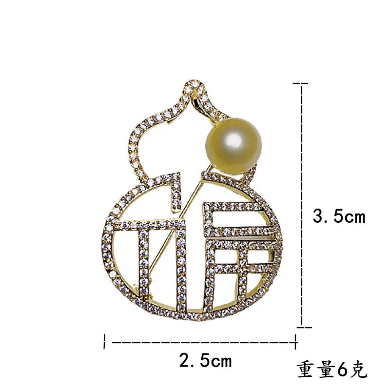 New Chinese style fu character gourd brooch creative exquisite birthday gift gourd corsage light luxury full diamond pin
