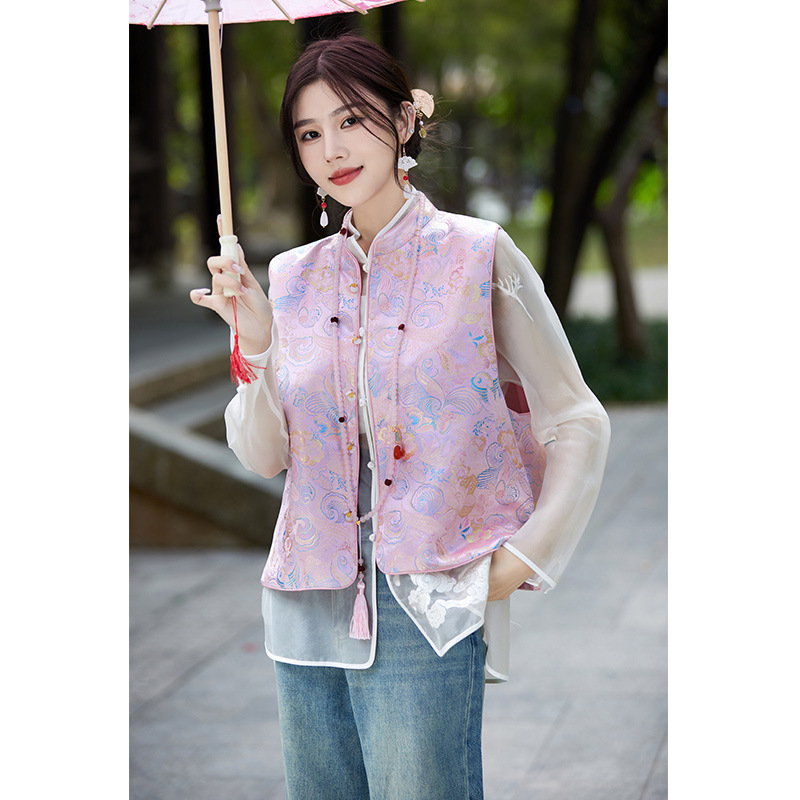 New Chinese Style Guofeng Heavy Industry Embroidery Vest Jacket Women's 2024 Spring Summer Autumn Style Pink Top