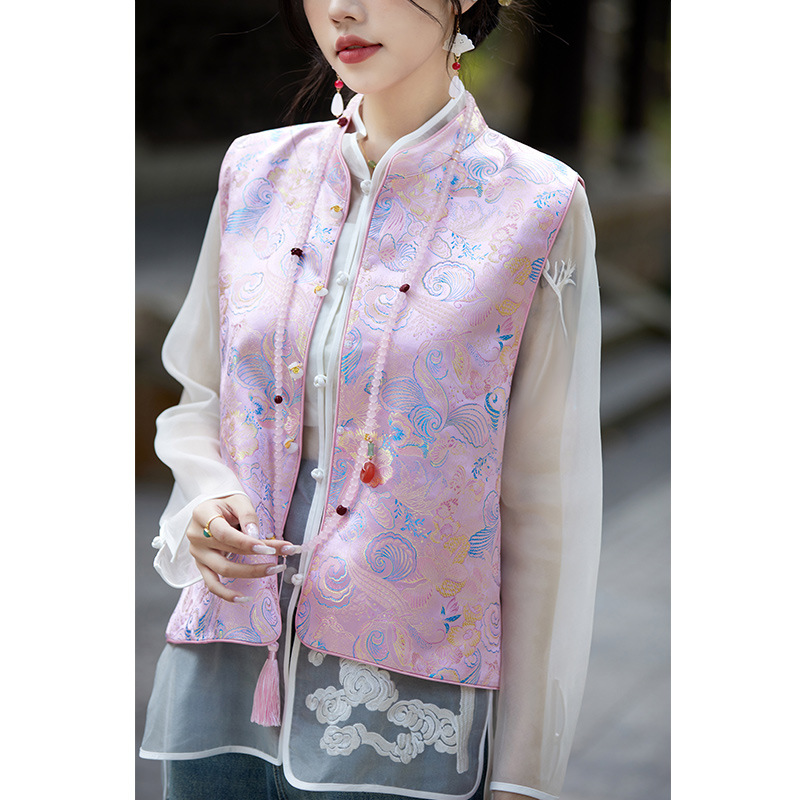 New Chinese Style Guofeng Heavy Industry Embroidery Vest Jacket Women’s 2024 Spring Summer Autumn Style Pink Top