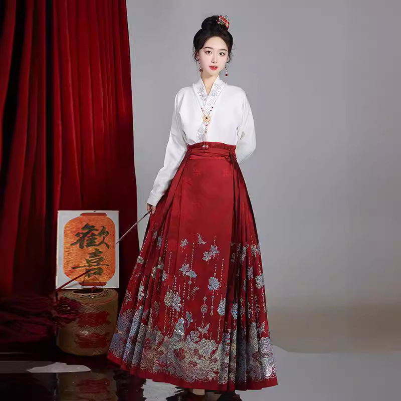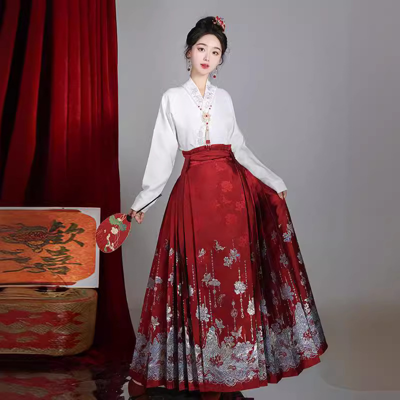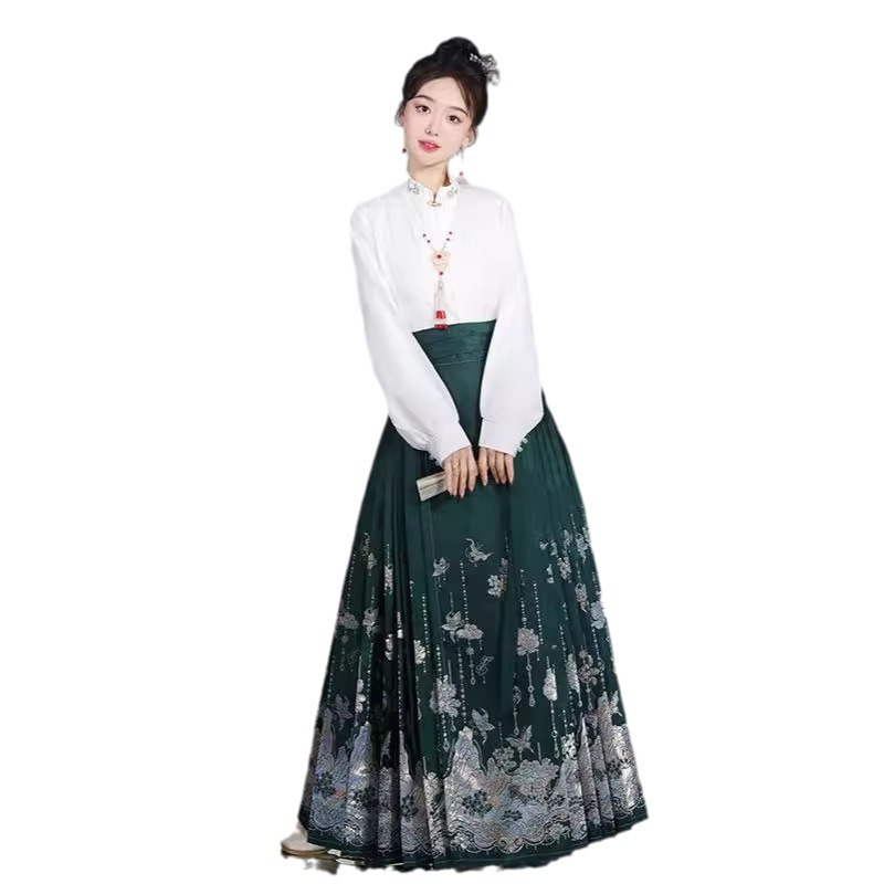 New Chinese-style Hanfu Women's Horse-faced Skirt suit Woven Silver Spirits Adult Hanfu Women's Daily Commuter Collocation Top for Spring and Summer