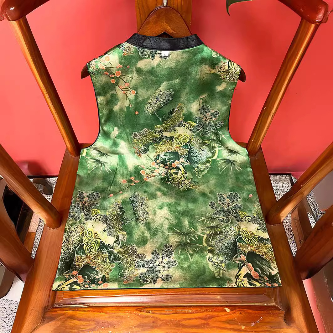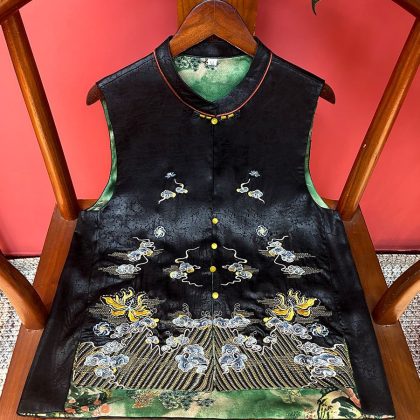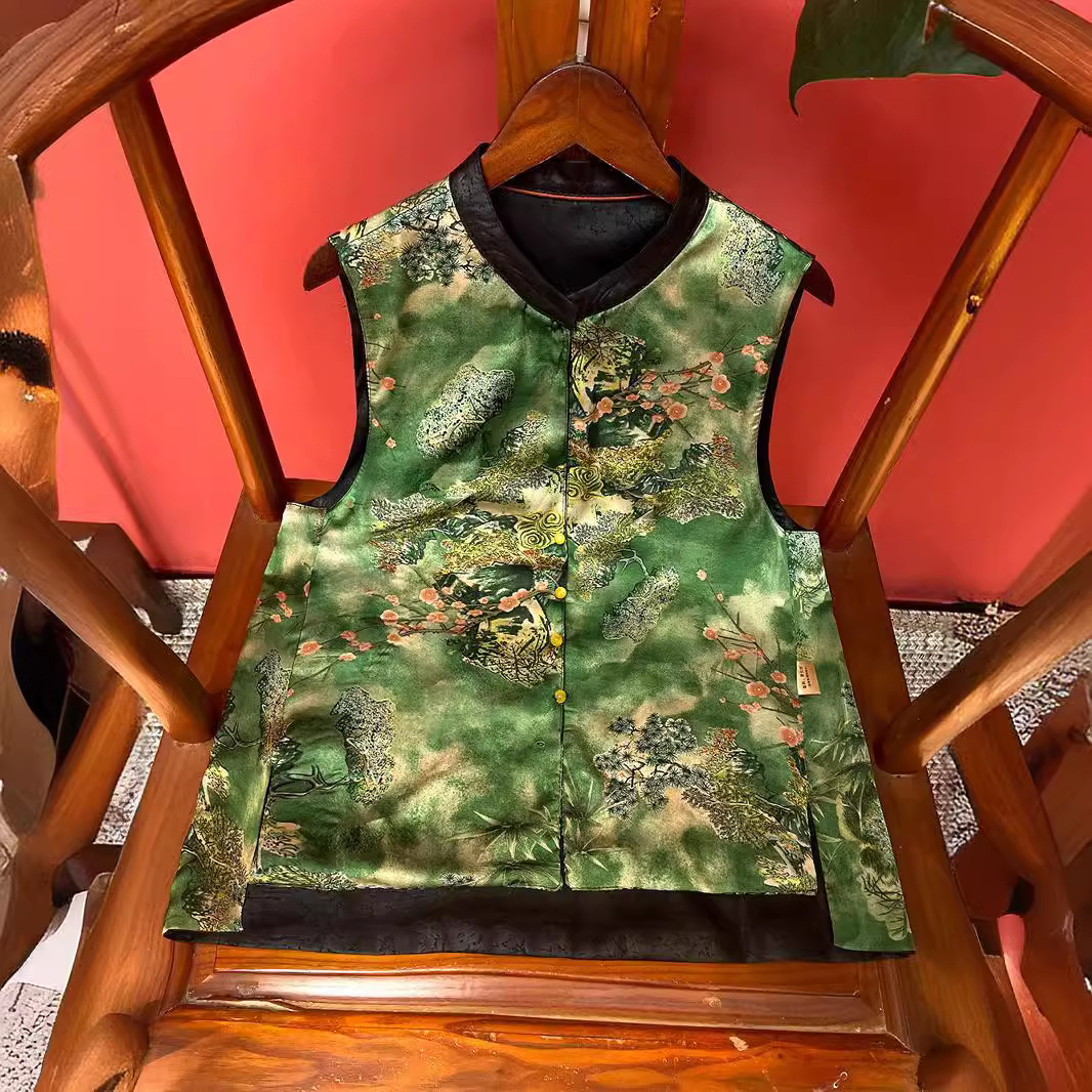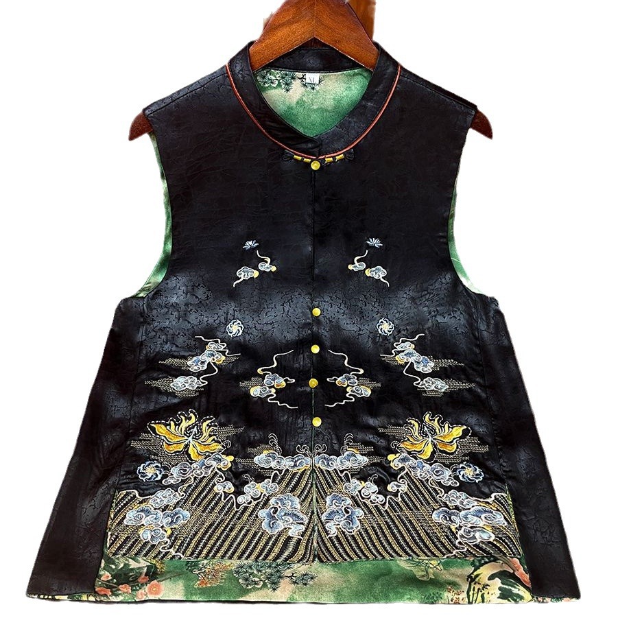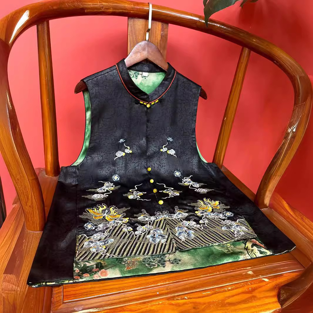 New Chinese-style Heavy Embroidered Double-sided Wearing Vest National Style Vintage Satin Turtle Crack Ware Satin Printed Women’s Vest