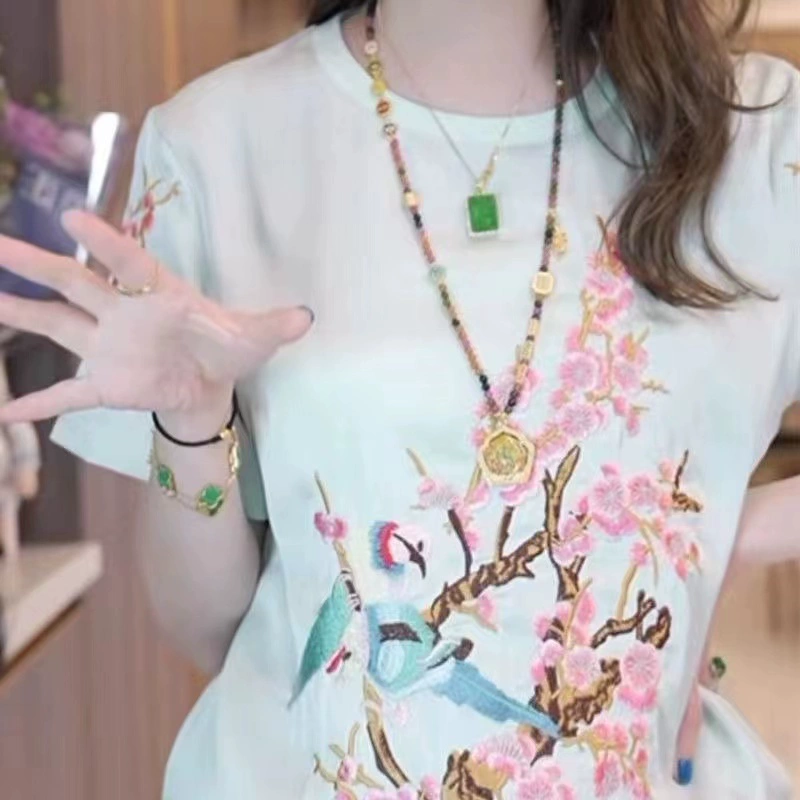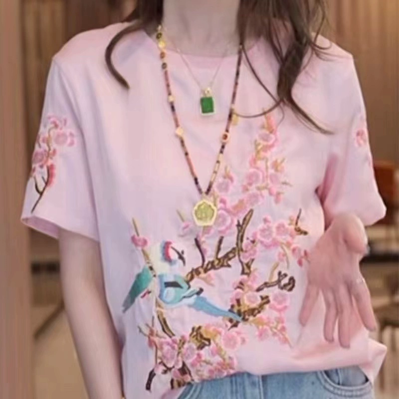 | nameOriginal | New Chinese style heavy industry embroidered fashion tops 2024 summer new loose T-shirt women's short-sleeved high-end small shirt |