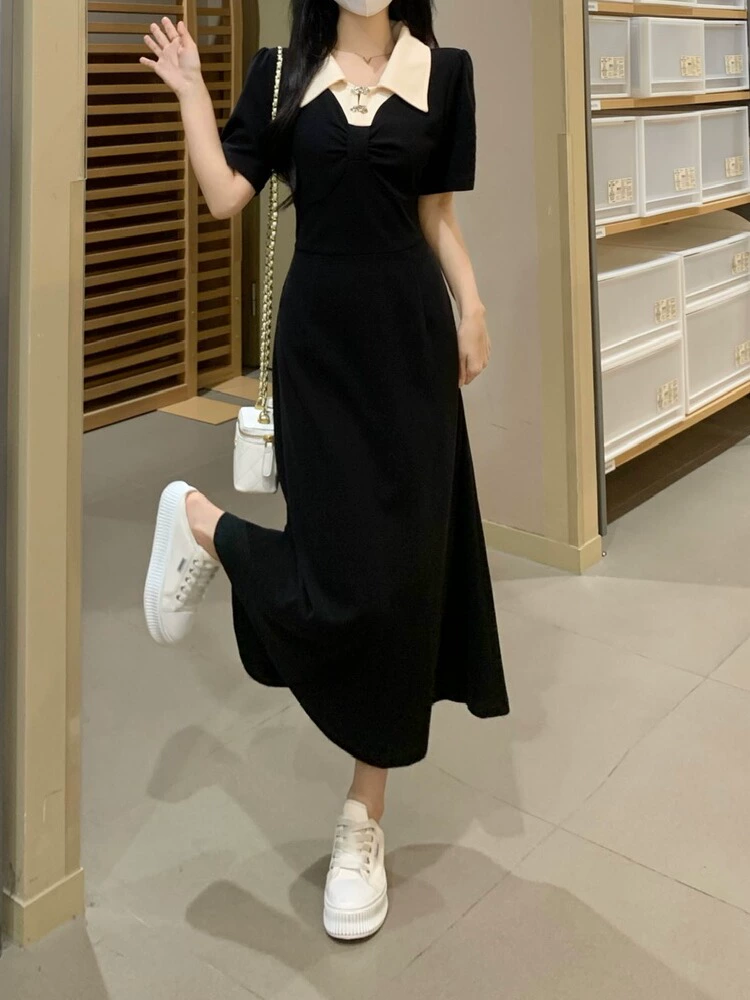 | nameOriginal | New Chinese style high-end polo collar short-sleeved dress for women summer plus size fat mm temperament waist slimming A-line long skirt |