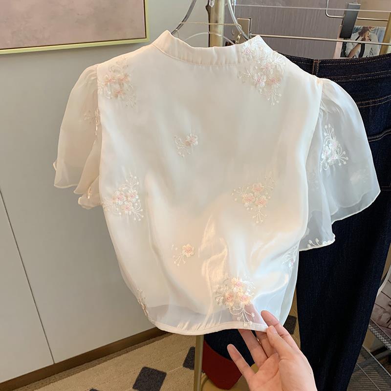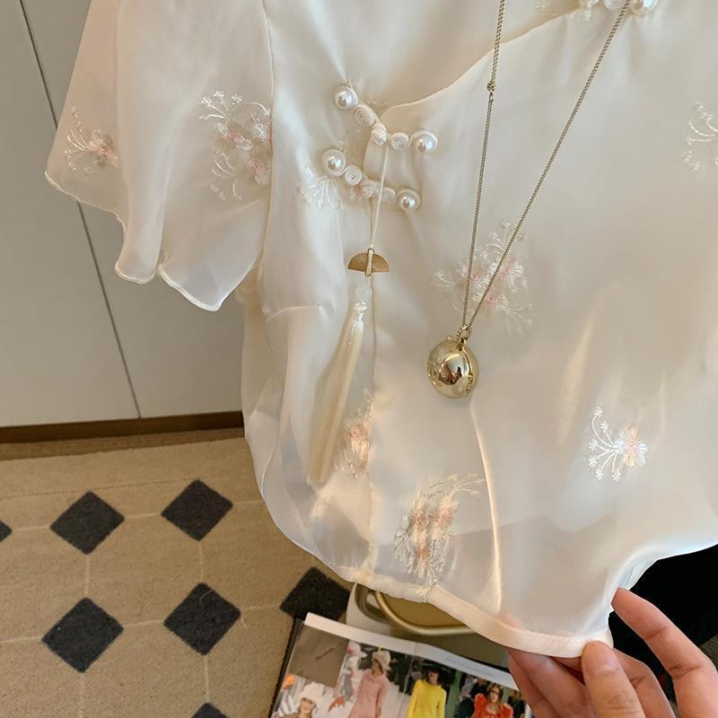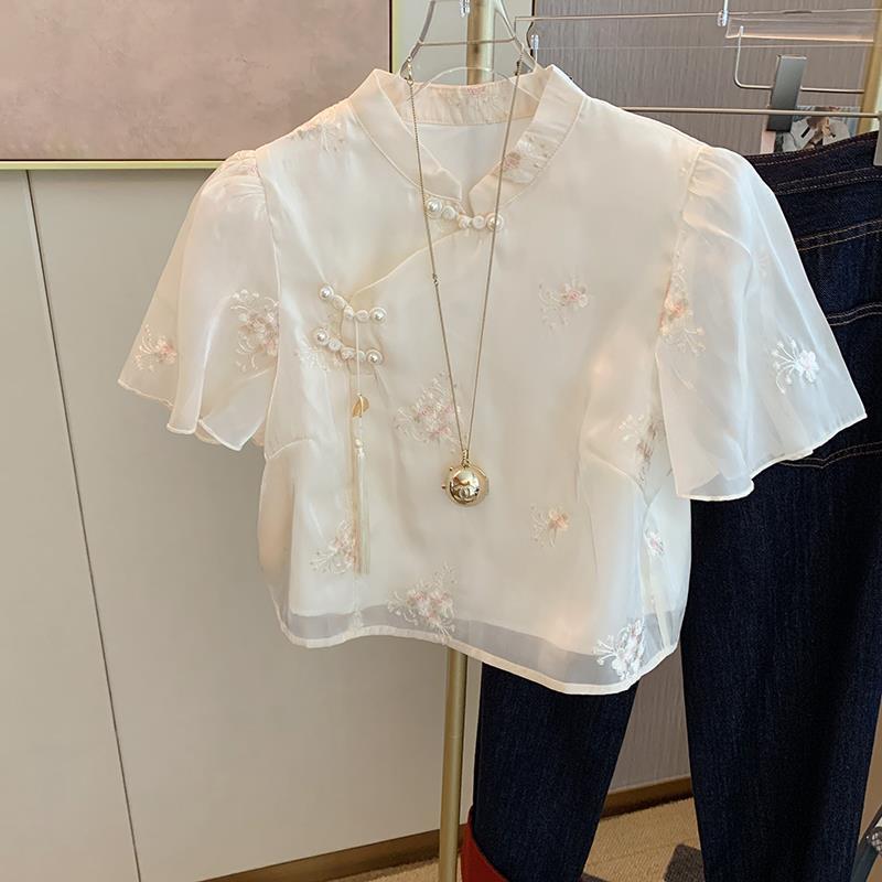 | nameOriginal | New Chinese Style Improved Cheongsam Button-Up Shirt Women's Summer New Gentle Style Light Mature National Style Embroidered Shirt Short Top |