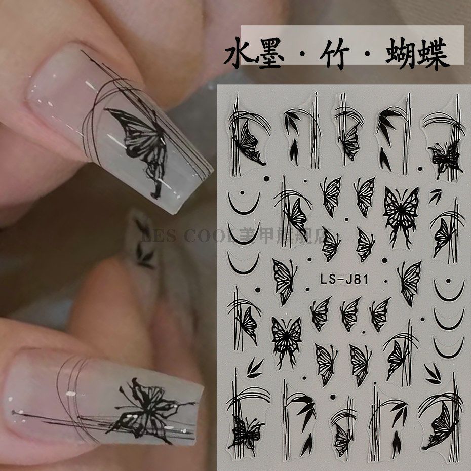 | nameOriginal | New Chinese style ink painting butterfly nail stickers popular Chinese style cold bamboo leaf line drawing butterfly nail stickers decoration |