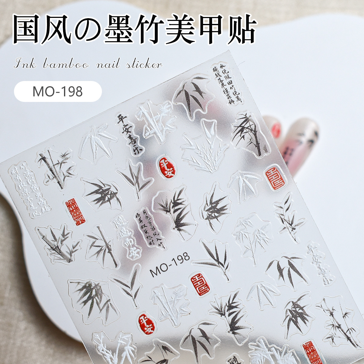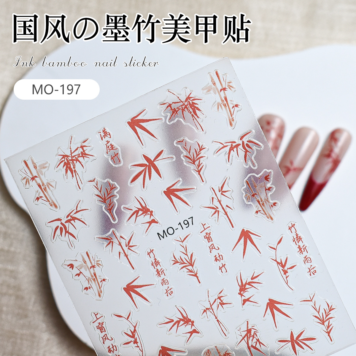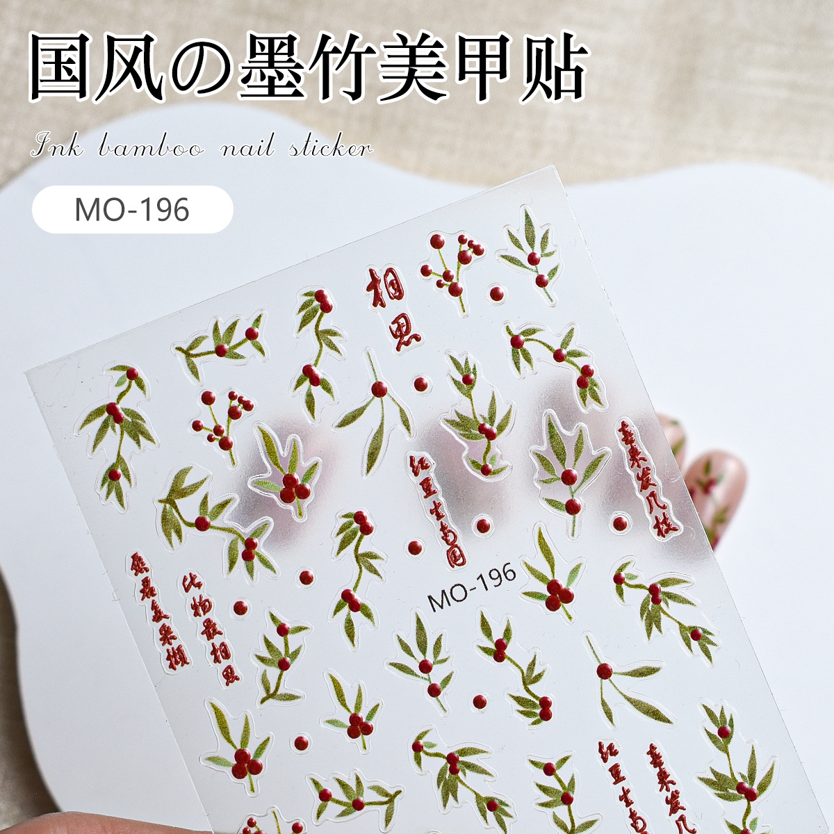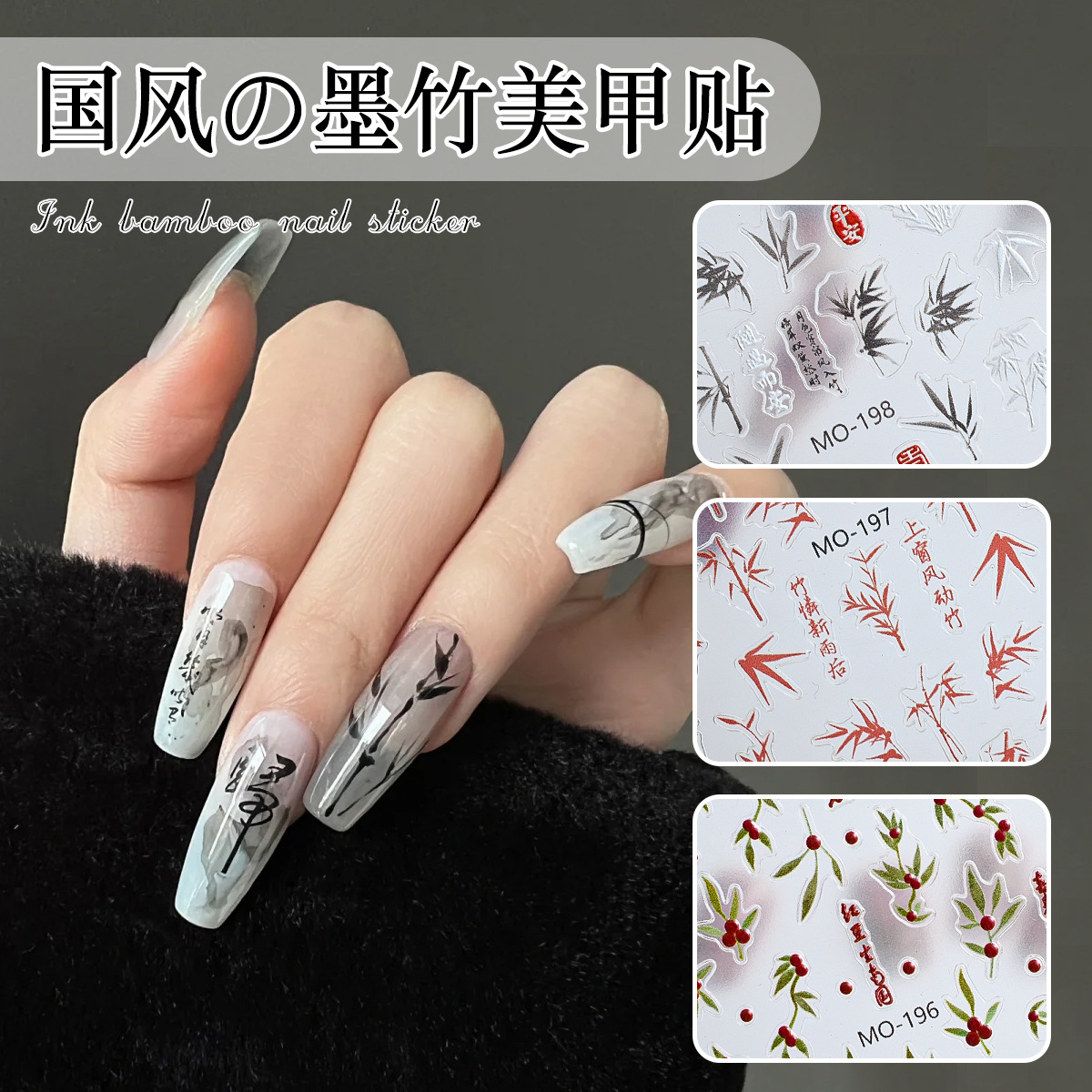 | nameOriginal | New Chinese style ink painting nail stickers 2024 New National Fashion red bean bamboo ink bamboo adhesive nail decorations |
