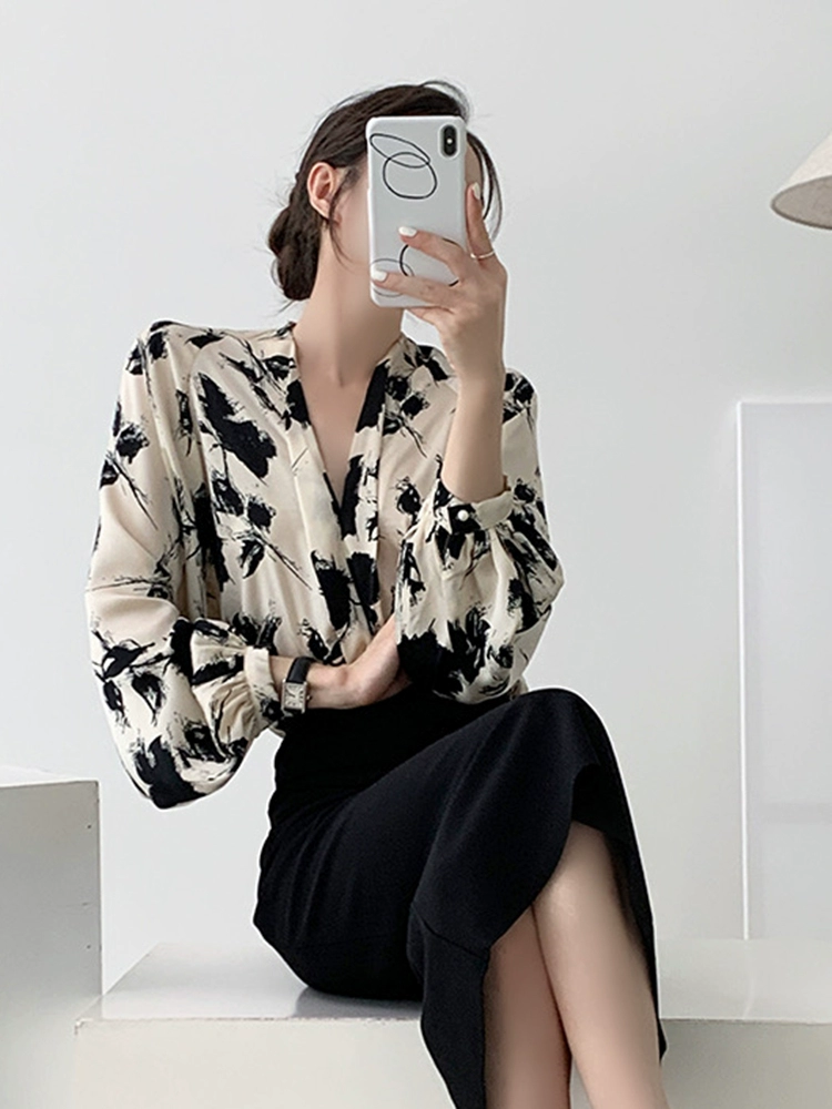 | nameOriginal | New Chinese style ink painting printed V-neck top shirt |