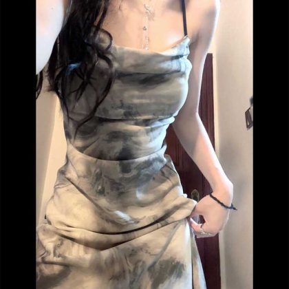 New Chinese style ink painting summer backless suspender dress