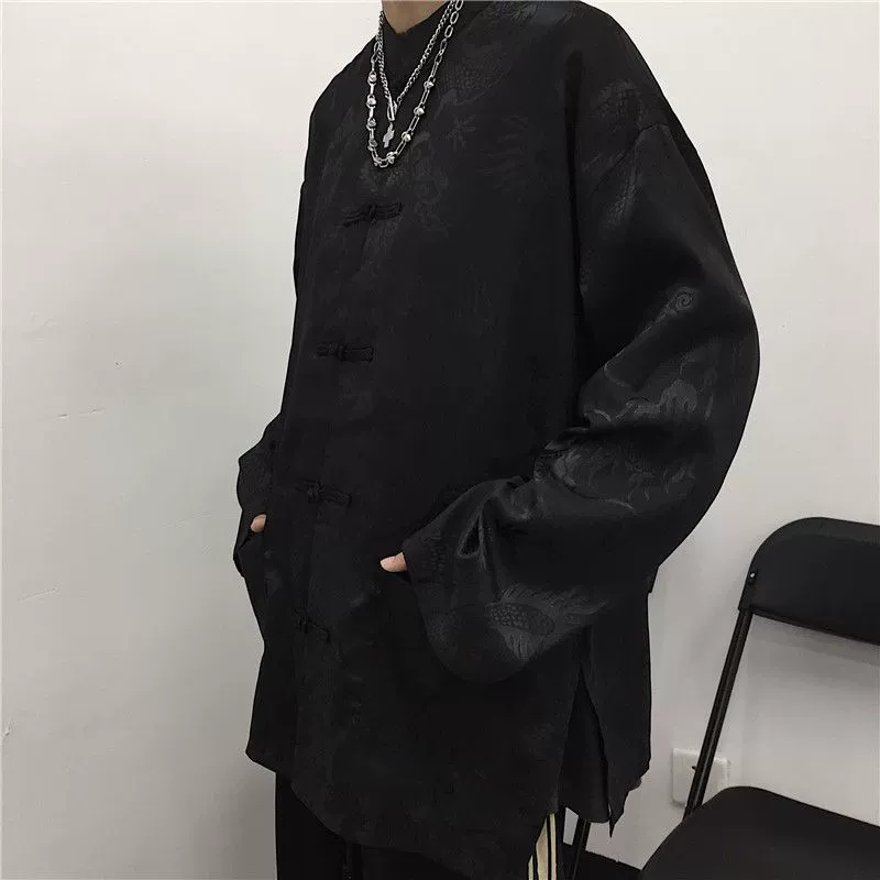 New Chinese Style Internet Celebrity Shirt Ice Silk National Trend Dragon Robe Plate Button