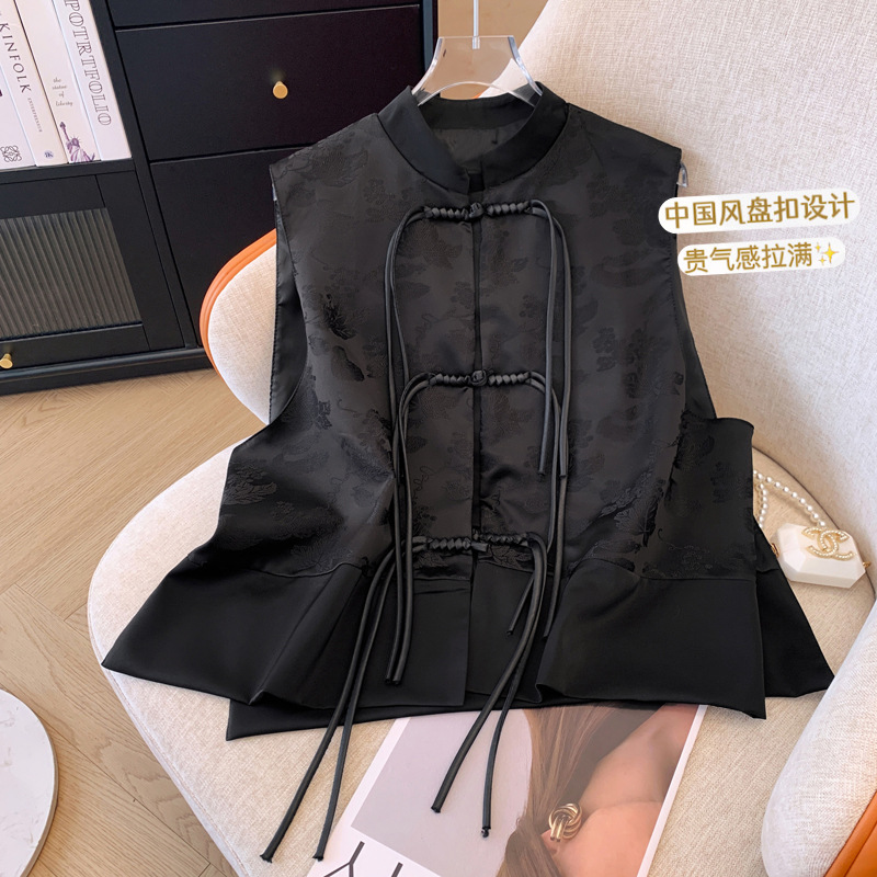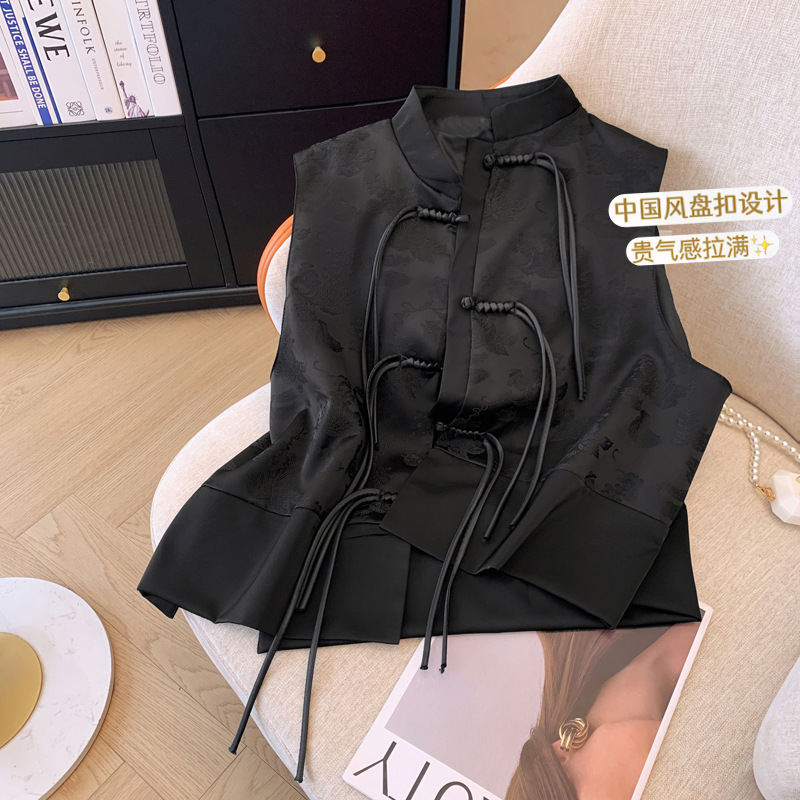| nameOriginal | New Chinese style jacquard buckle black vest coat for women Spring thin Western style Tang suit vest short waistcoat |