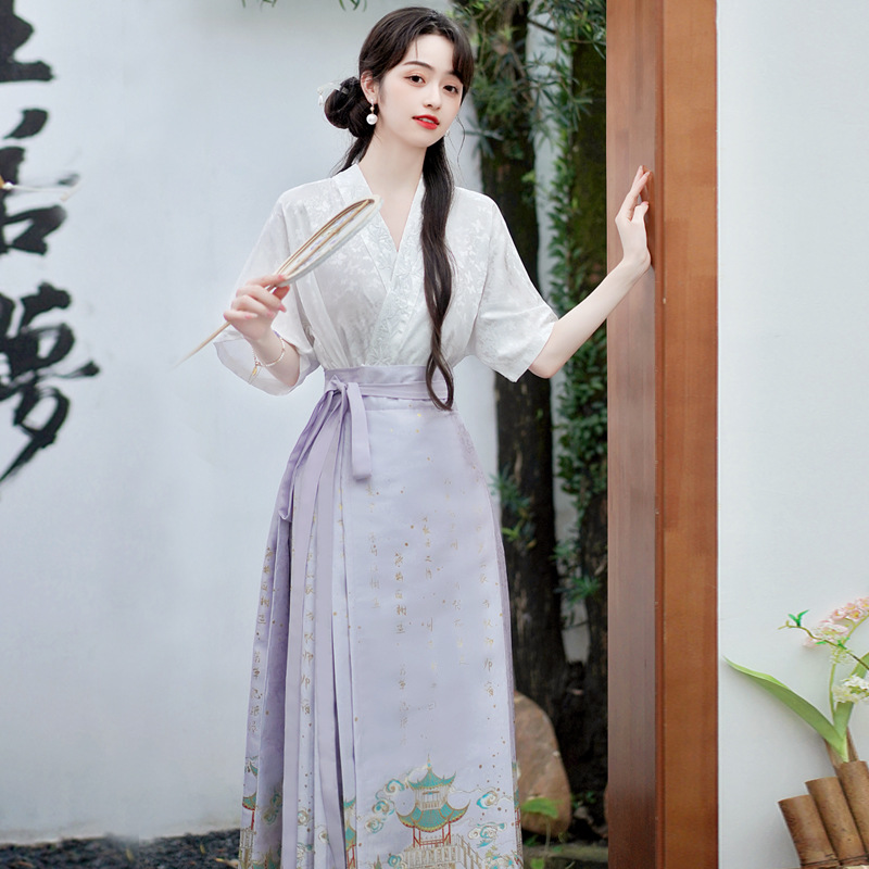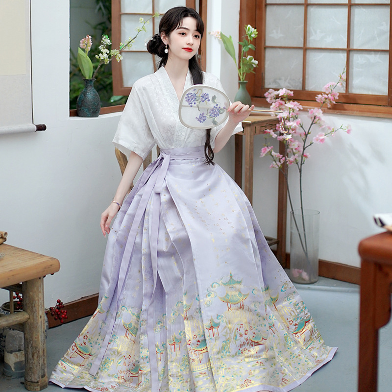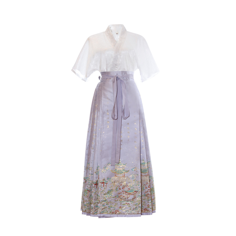 | nameOriginal | New Chinese-style jacquard slant placket V-neck one-piece heavy-duty makeup flower woven gold horse-faced skirt with blue pavilion sequence Zijin |