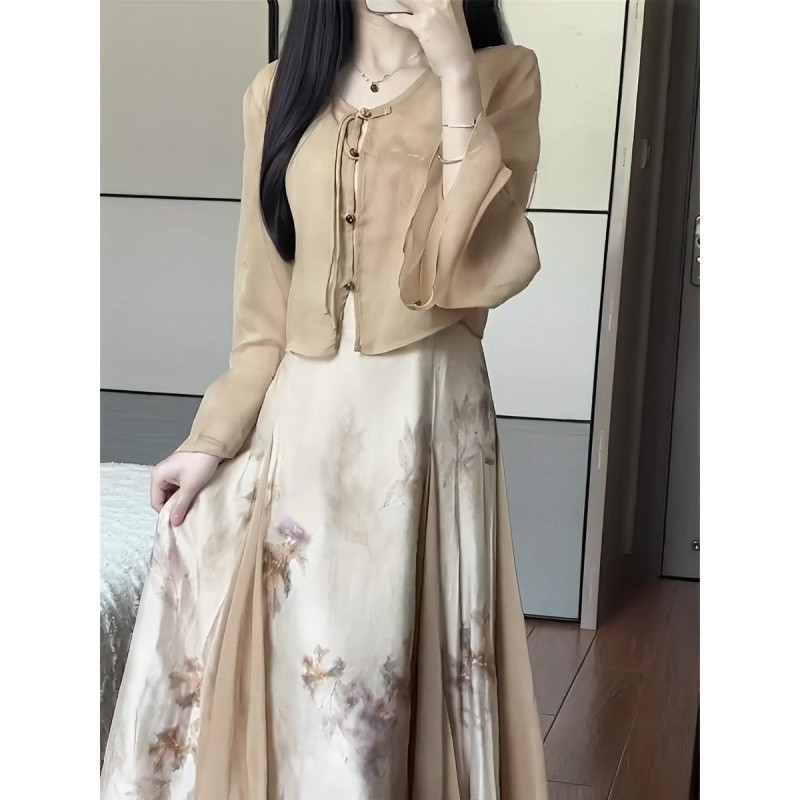 | nameOriginal | New Chinese Style khaki Cardigan Slip Skirt suit Elegant Retro National Style Summer 2023 New Pure Desire Style Matching |