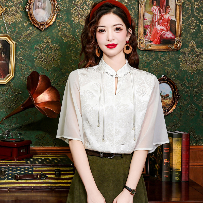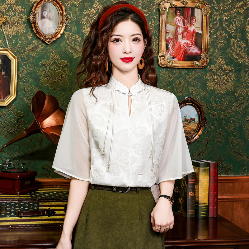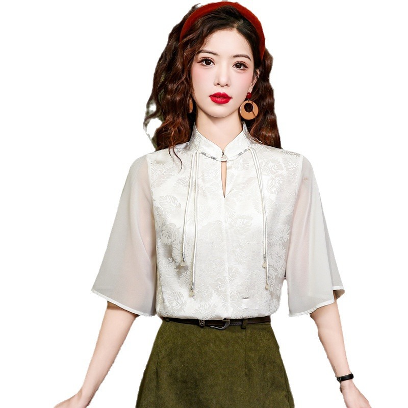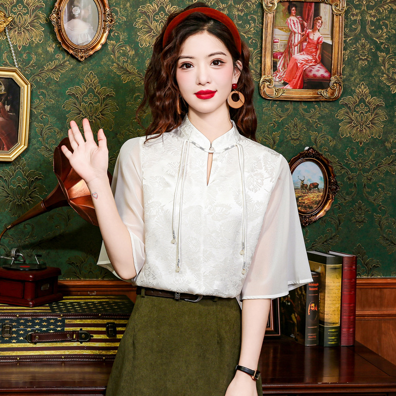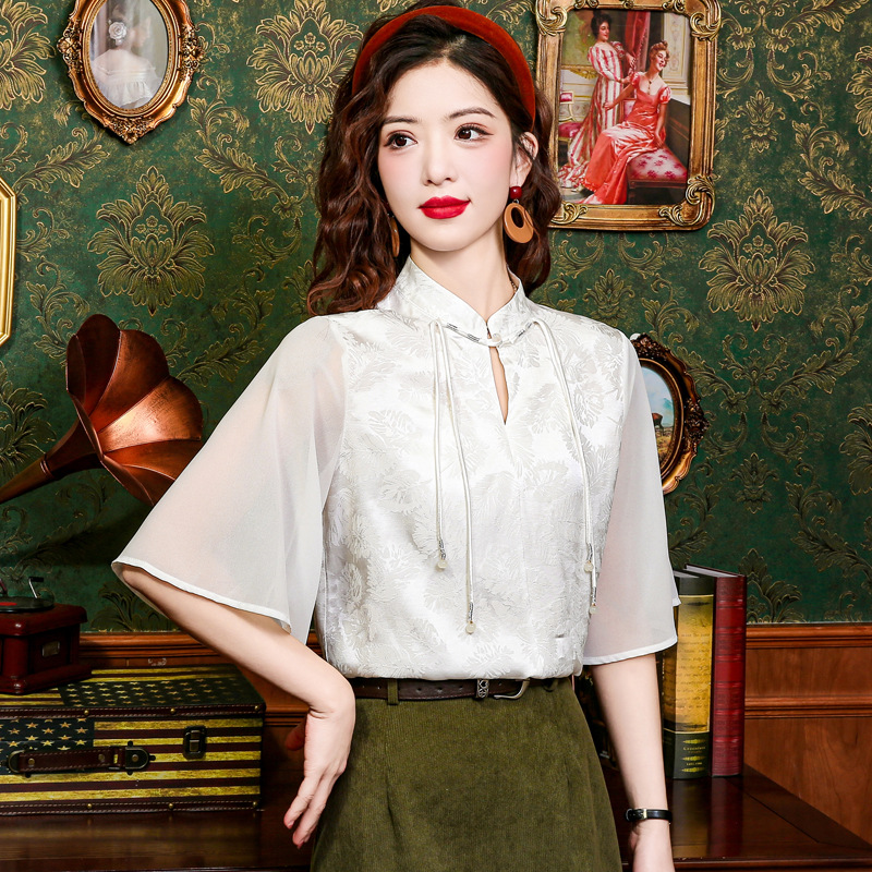 New Chinese Style Light Guofeng Jacquard Button Short Sleeve Shirt Small 2024 Summer Horse Face Skirt Top Matching
