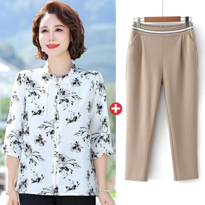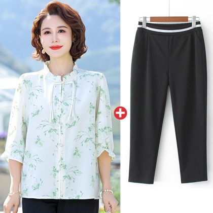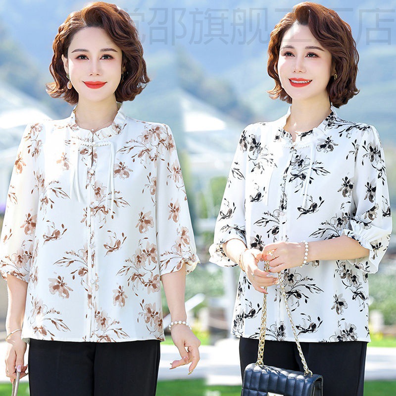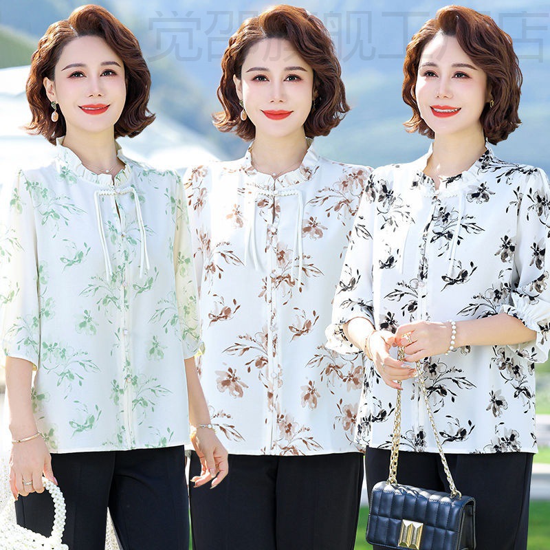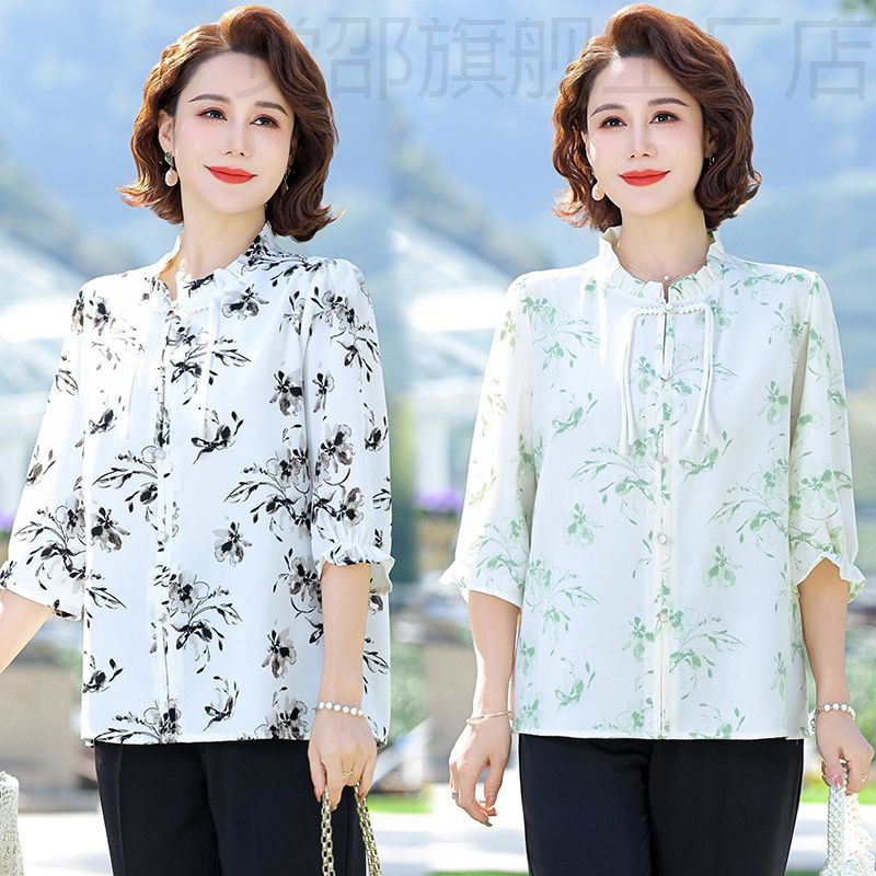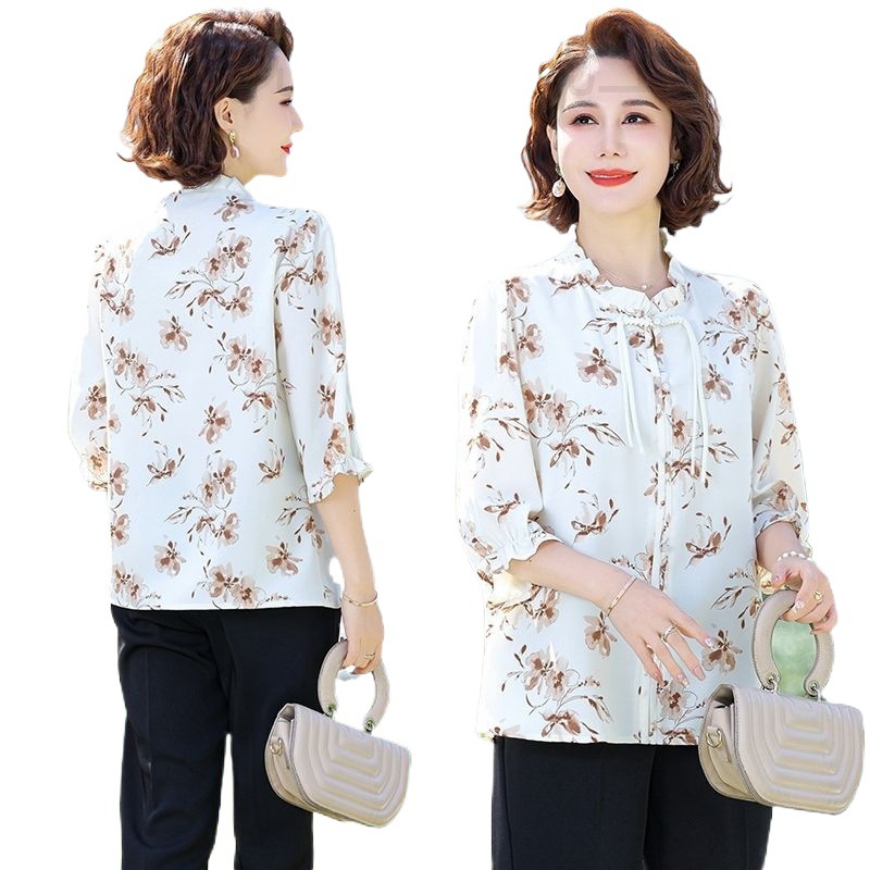 | nameOriginal | New Chinese Style Mother's Summer Chiffon Shirt with Seven-point Sleeve Thin Vertical Collar Middle-aged and Elderly Women's Summer New Fashion |