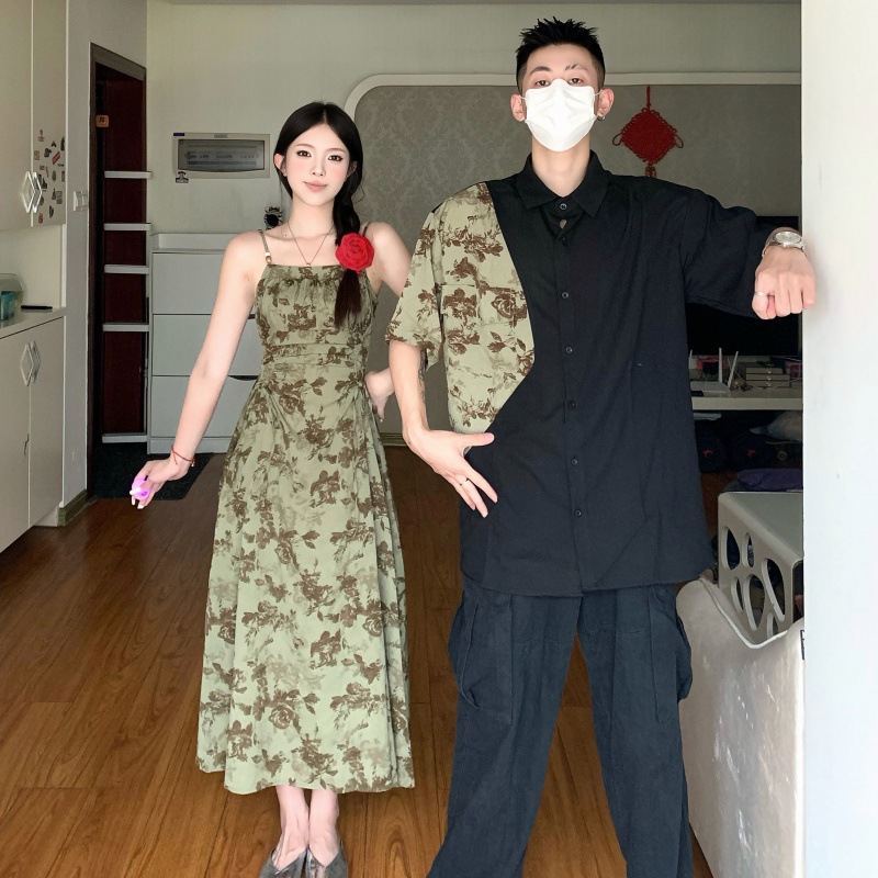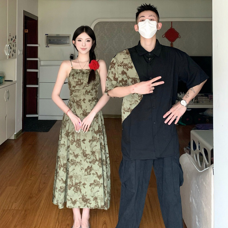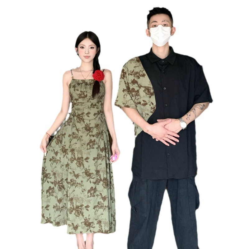 | nameOriginal | New Chinese Style National Style 2024 Real Shot Couple Dress Women's Sling Waist Elegant Mid-length dress Color Matching Shirt |