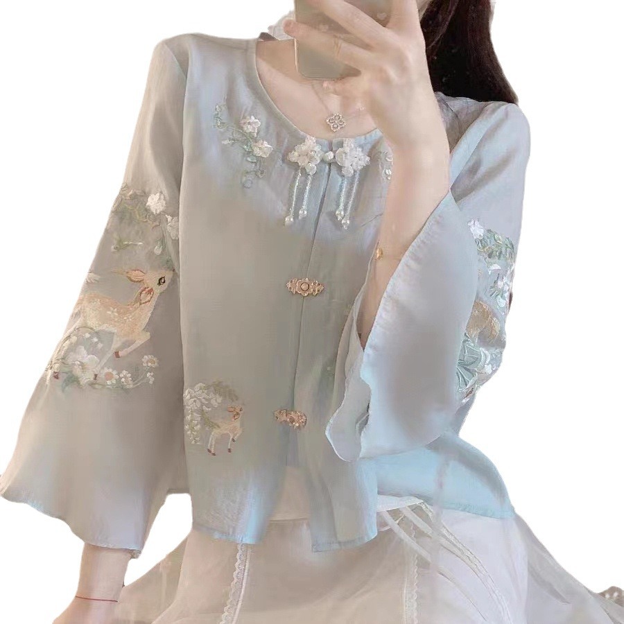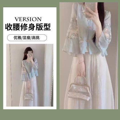 | nameOriginal | New Chinese Style National Style Ancient Coat Hanfu Tea Art Women's Tang Suit Improved Embroidered Top Shirt dress Summer Two-piece Set |