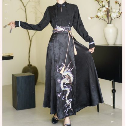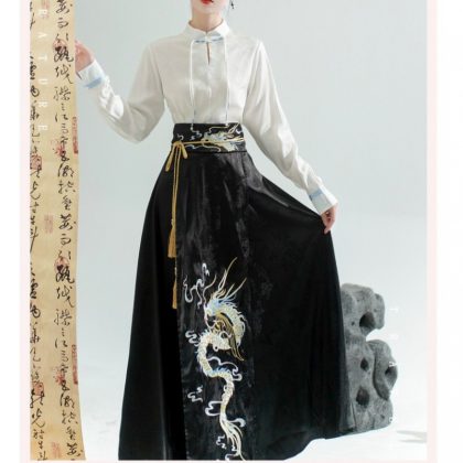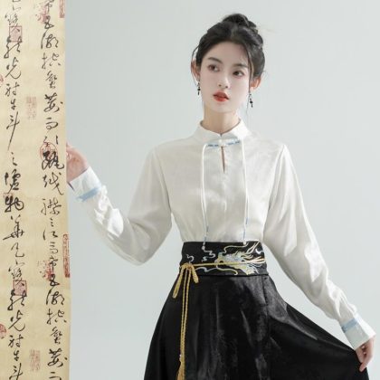 New Chinese Style National Style Ancient Style Hanfu Top Spring and Autumn Elegant Collar Shirt Women’s Long Sleeve Shirt with Horse-faced Skirt for Women