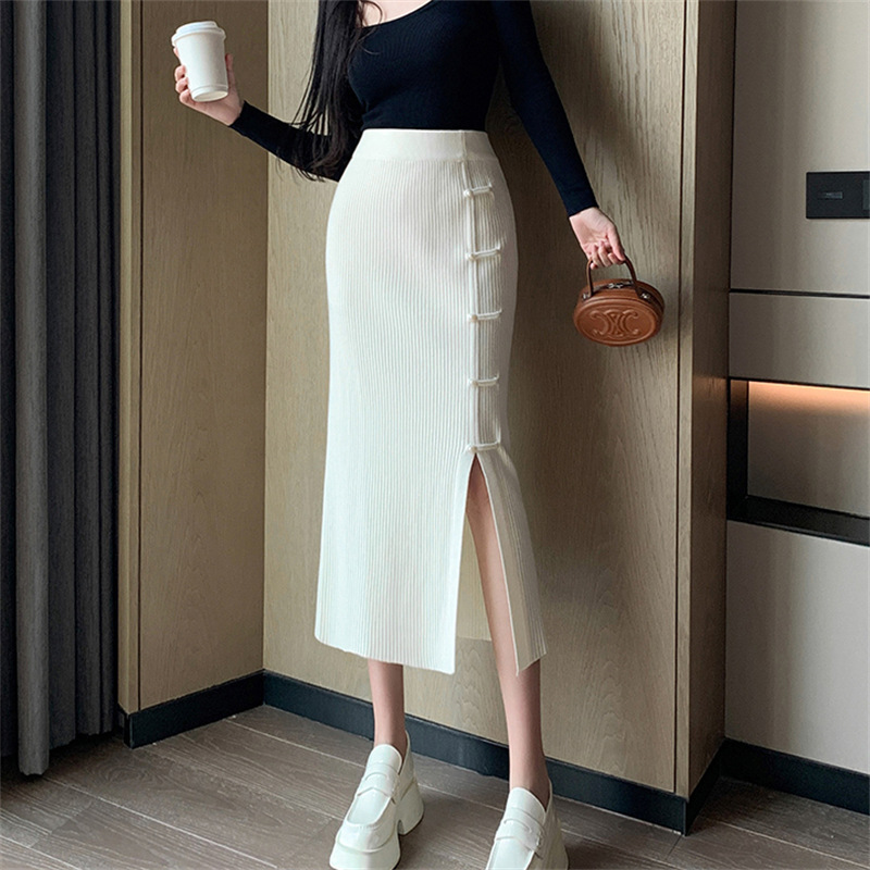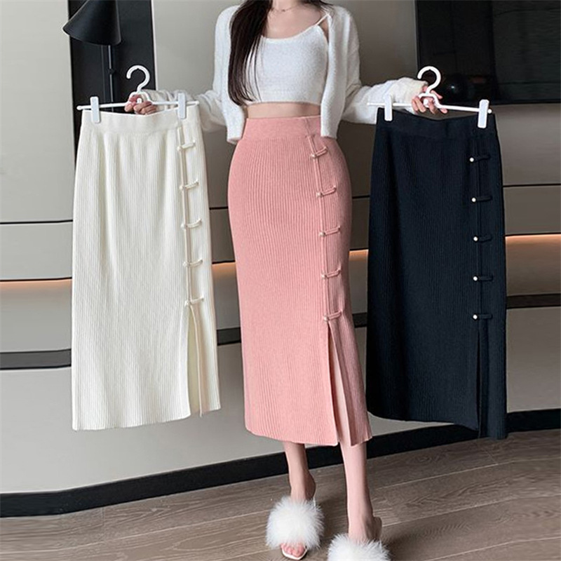 | nameOriginal | New Chinese Style National Style Buckle Knitted Skirt Women's Autumn and Winter Mid-length High Waist Slimming Split A- Line Hip Skirt |