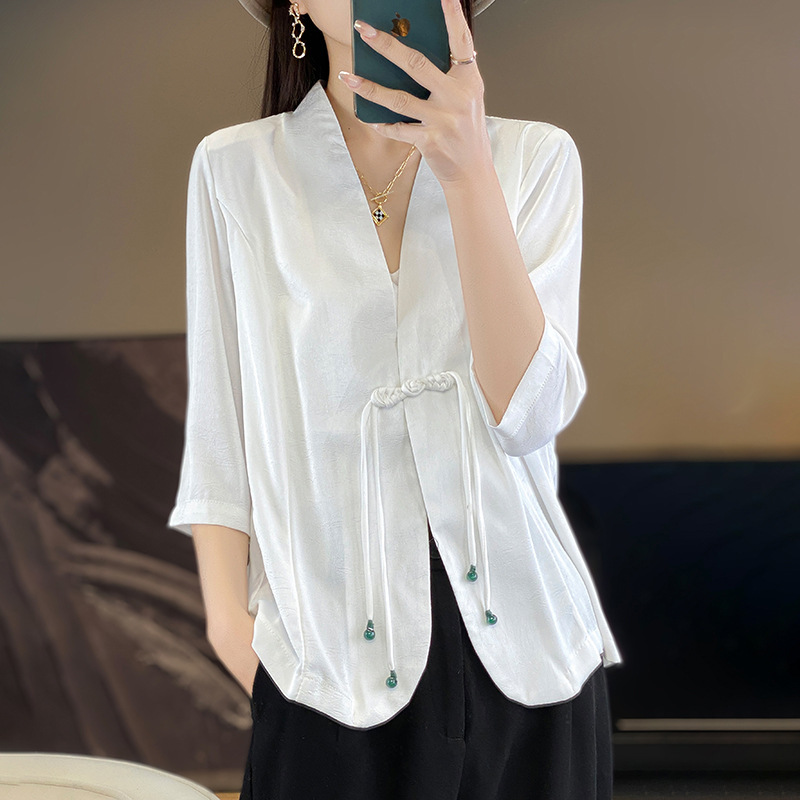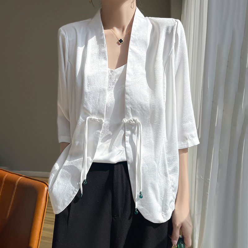 | nameOriginal | New Chinese Style National Style Buckle Suit Jacket Cardigan Spring and Summer New Arrival Seven-point Sleeve Satin Outer Jacket Fashion All-match |