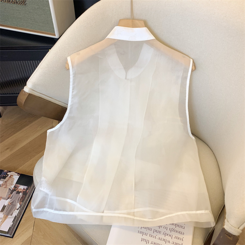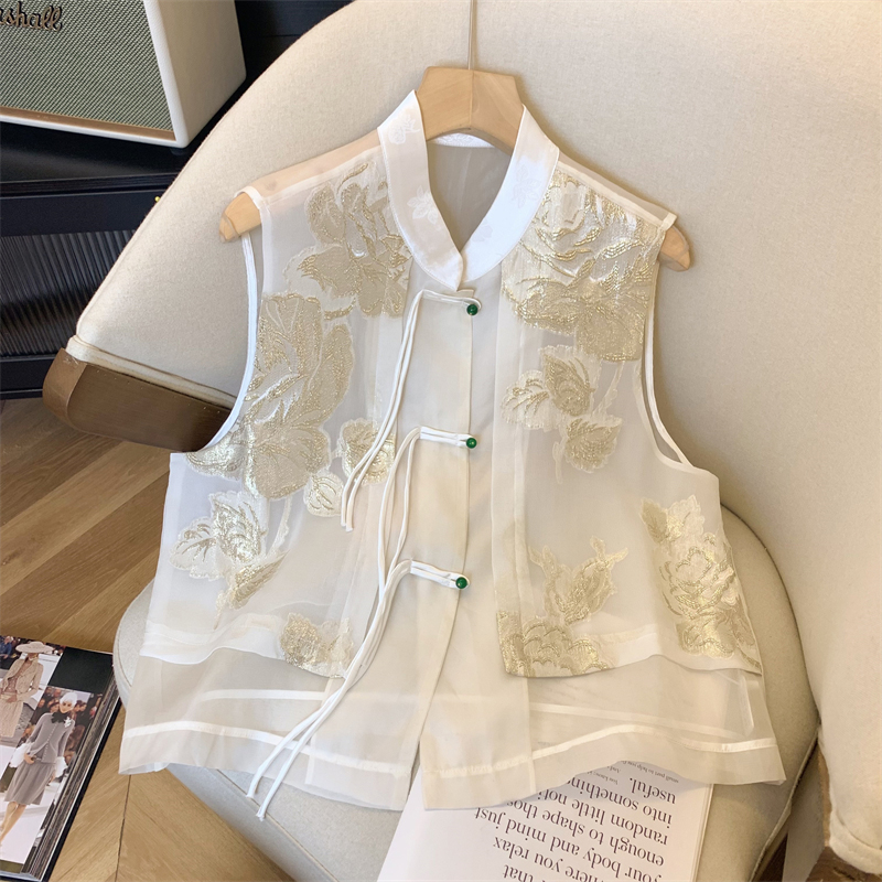 New Chinese Style National Style Button Collar Chiffon Vest Women's 2024 New Design Sense Chinese Element Embroidered Vest Top