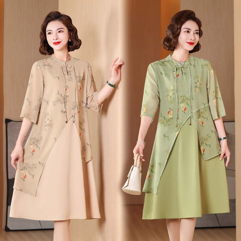 | nameOriginal | New Chinese Style National Style Cheongsam Skirt Middle-aged Mother Summer Dress Temperament Middle-aged and Elderly Women's Dress Western Style Fake Two-piece dress |