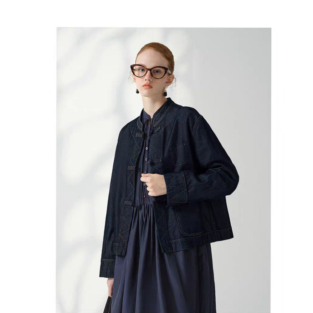 | nameOriginal | New Chinese Style National Style Collar Button Small Stand Collar Bright Line Retro Denim Coat 24 Early Autumn Black Denim Coat |