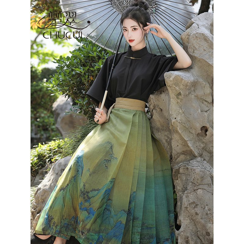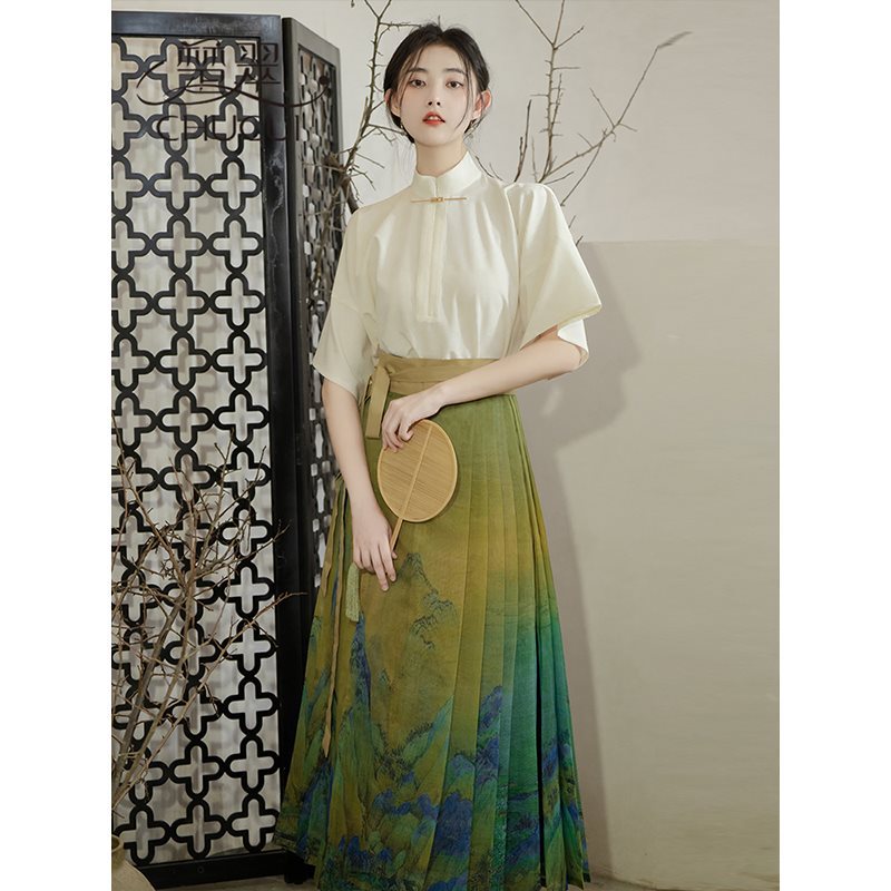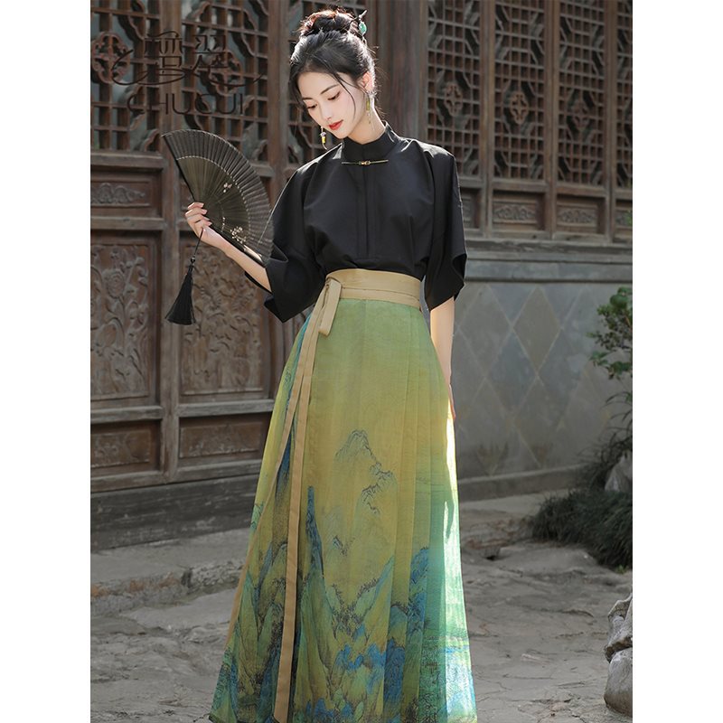 | nameOriginal | New Chinese Style National Style Daily Wearing Hanfu Summer 2024 New Style Little Man Thousand Li Jiangshan Horse Face Skirt suit Women |