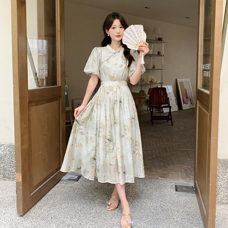 New Chinese Style National Style dress Women’s Summer 2024 New Arrival Buckle Elegant Cool Sense Elegant Slimming Modified Cheongsam Dress