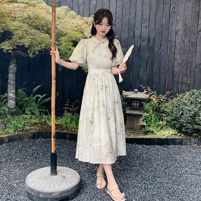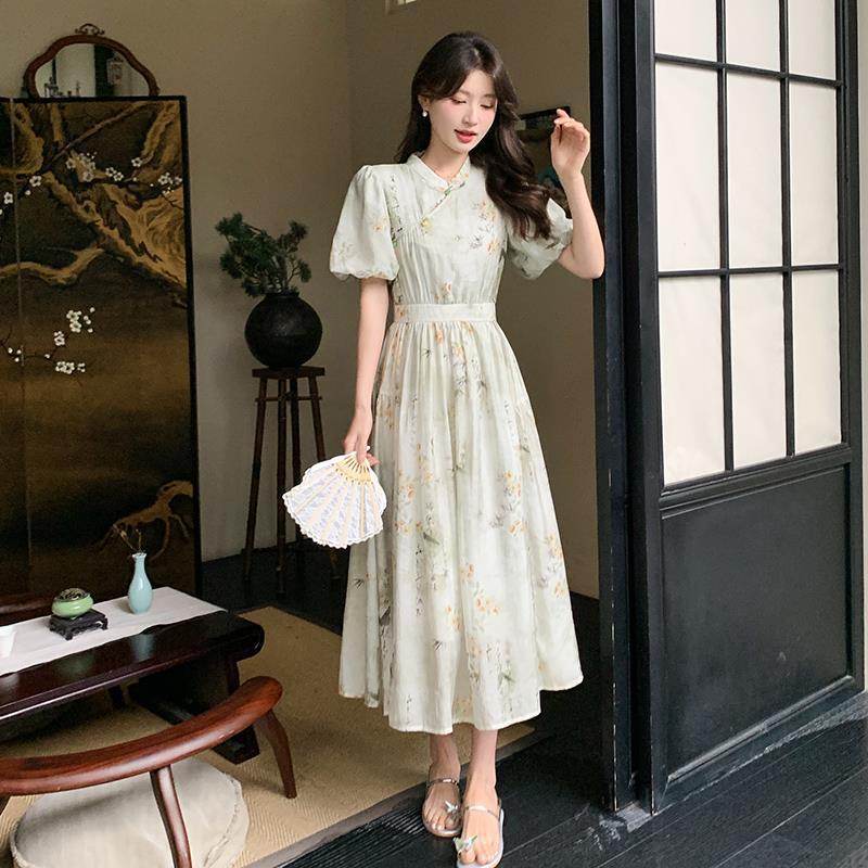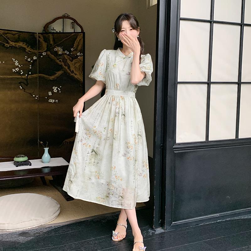 New Chinese Style National Style dress Women's Summer 2024 New Arrival Buckle Elegant Cool Sense Elegant Slimming Modified Cheongsam Dress
