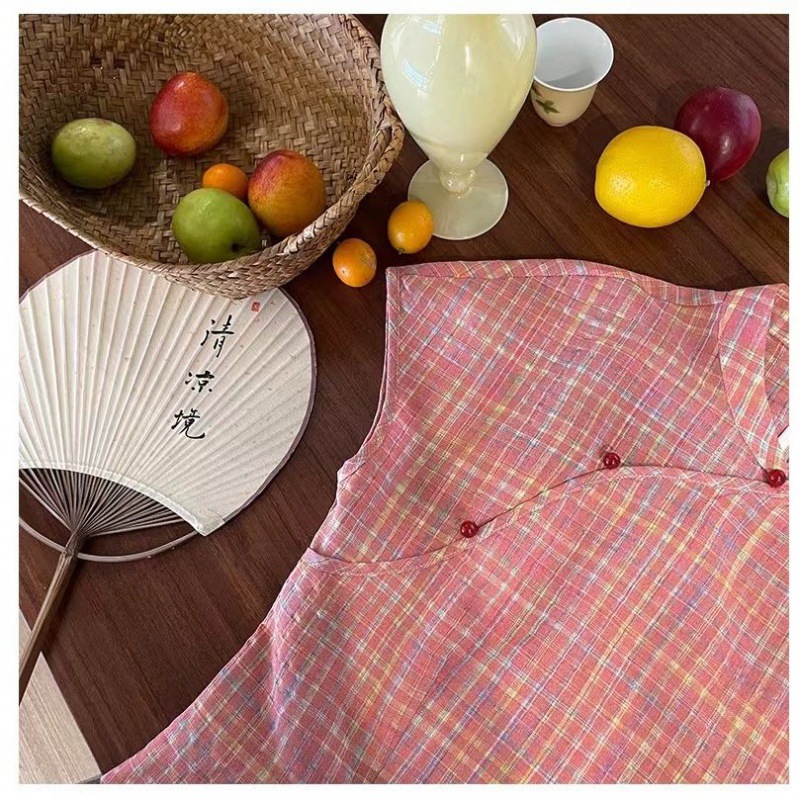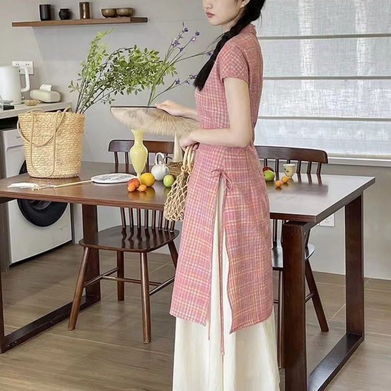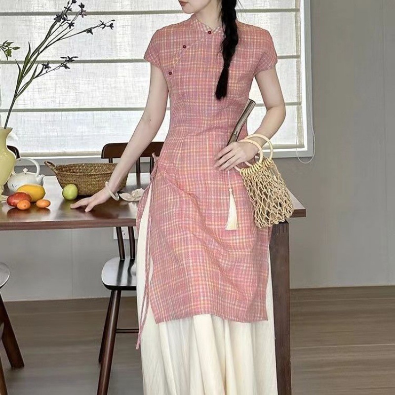 | nameOriginal | New Chinese Style National Style Elegant Powder Plaid Short-sleeved Modified Cheongsam Dress Rice White Skirt suit Women's Summer Two-piece Set |