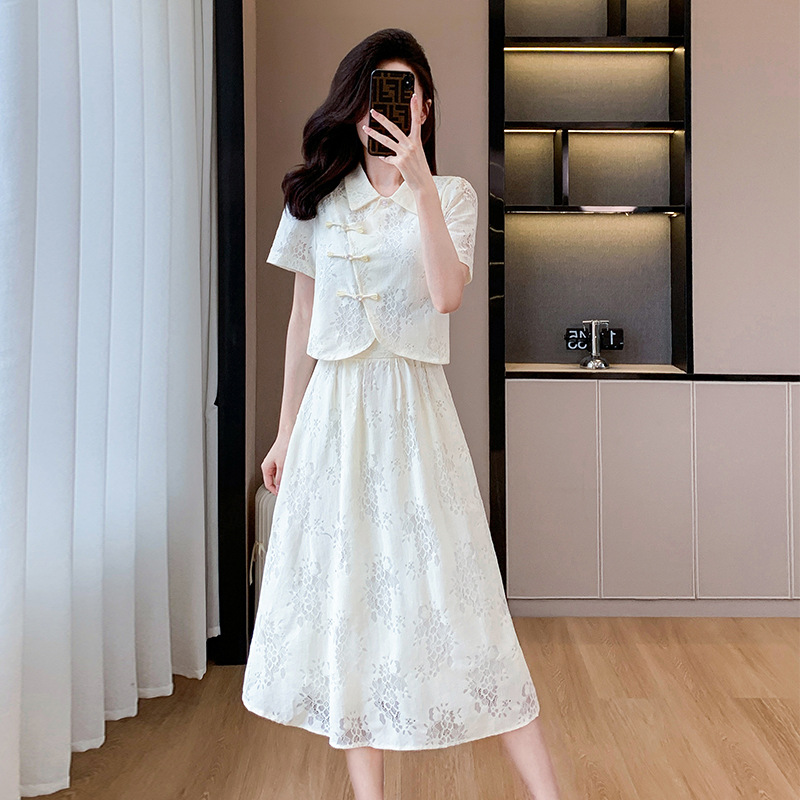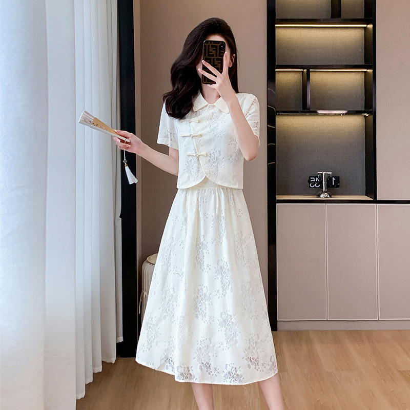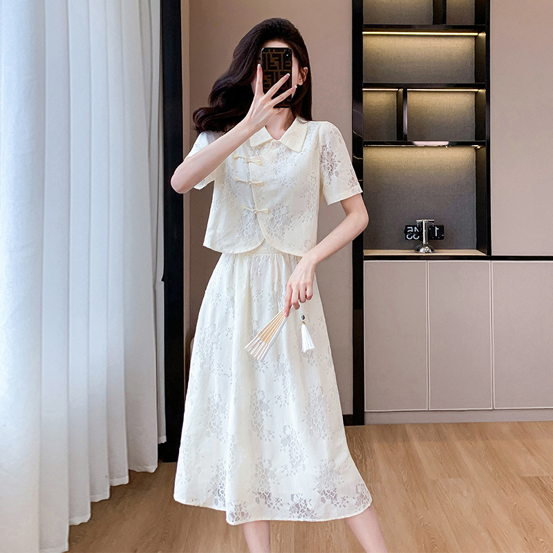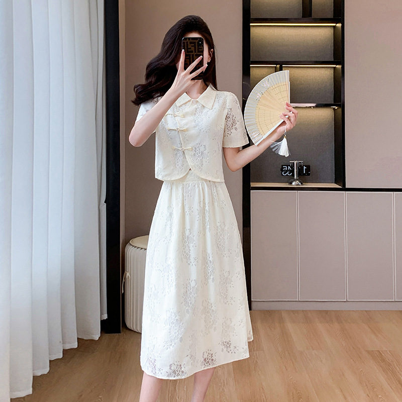 | nameOriginal | New Chinese Style National Style Gentle Dress 2024 New Slimming Lace Top High-grade overskirt Two-piece Set |