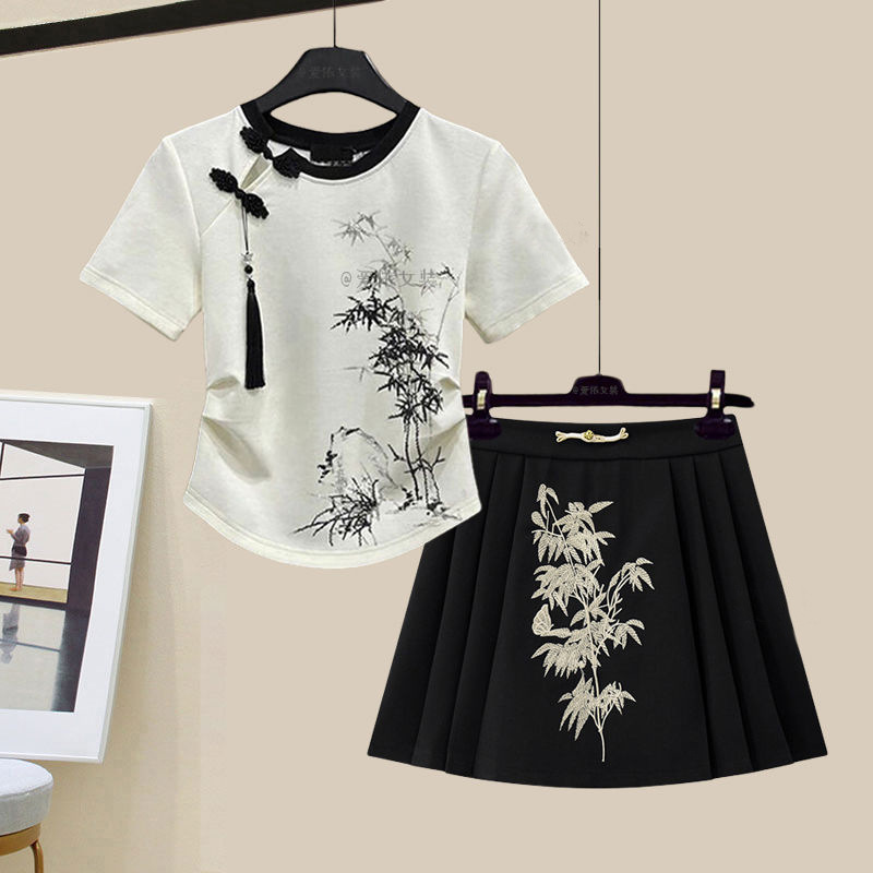 | nameOriginal | New Chinese Style National Style Hanfu Short-sleeved T-shirt Women's Summer 2024 New Slim-fit Design Sense Chinese Elements Pleated Skirt |