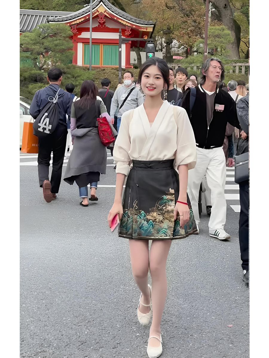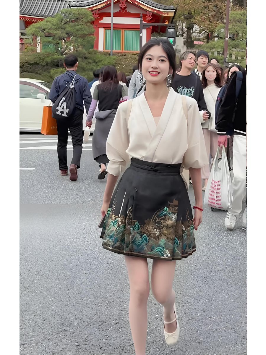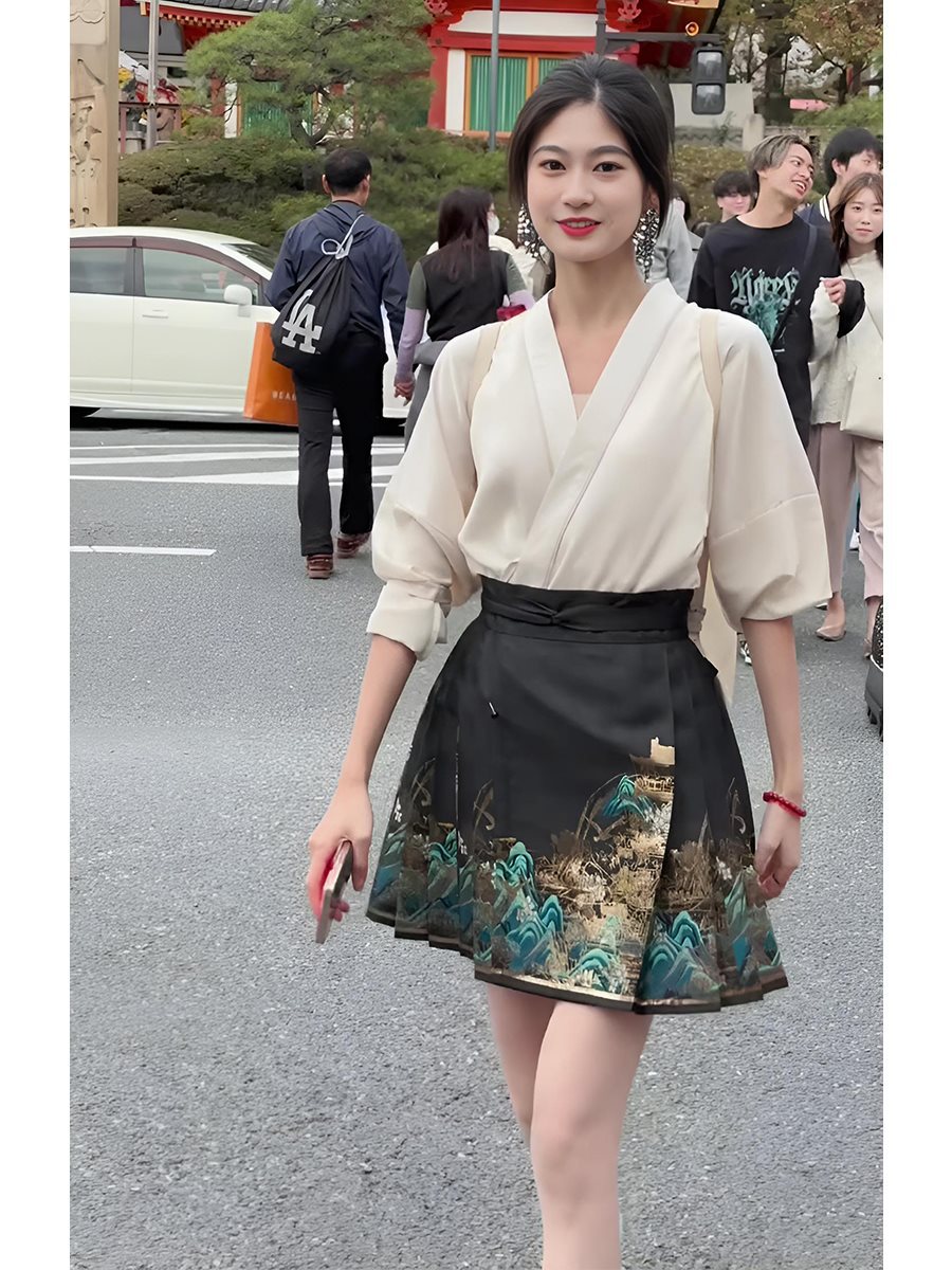 | nameOriginal | New Chinese Style National Style High Waist Short Horse-faced Skirt for suit Women Summer Two-piece Suit for Small and Improved Ming Style Hanfu for Summer |