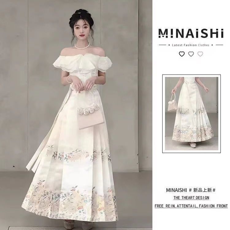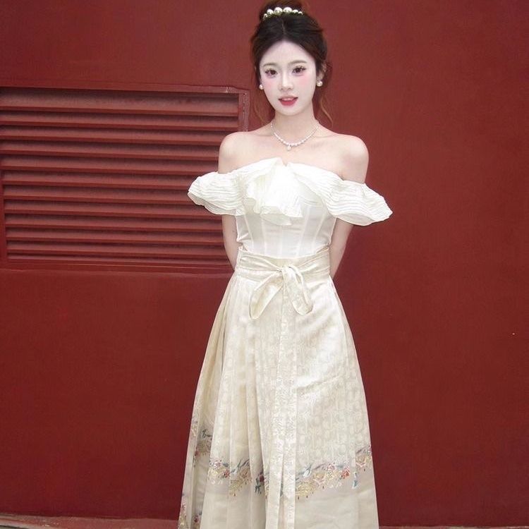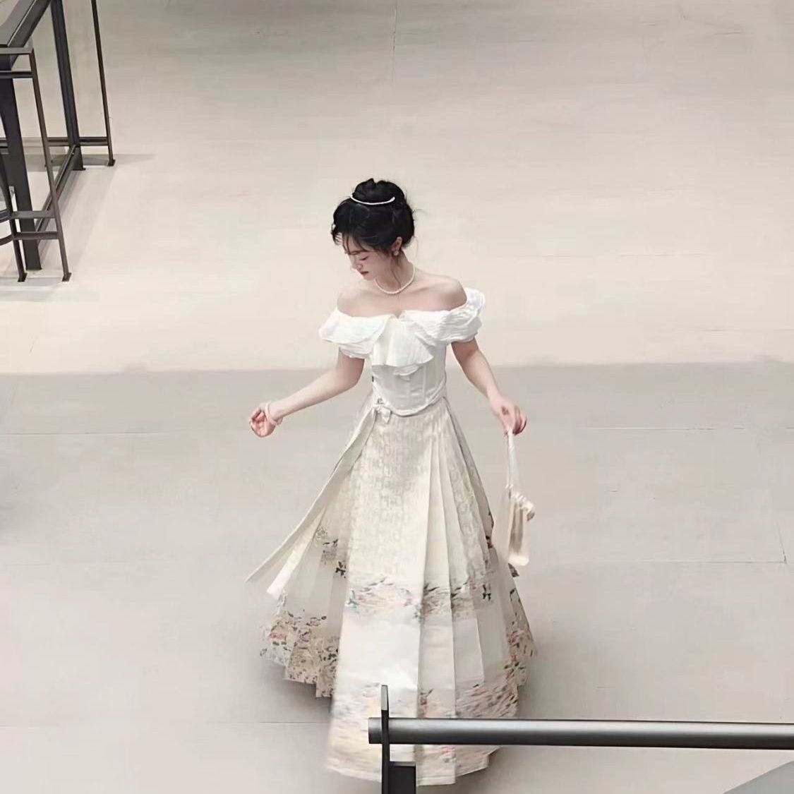 New Chinese Style National Style Horse Face Skirt suit One-Shoulder Elegant Thin Daily Improved Super Fairy Elegant Slimming Hanfu