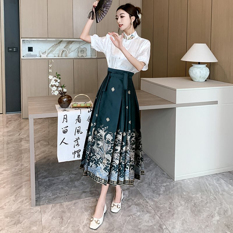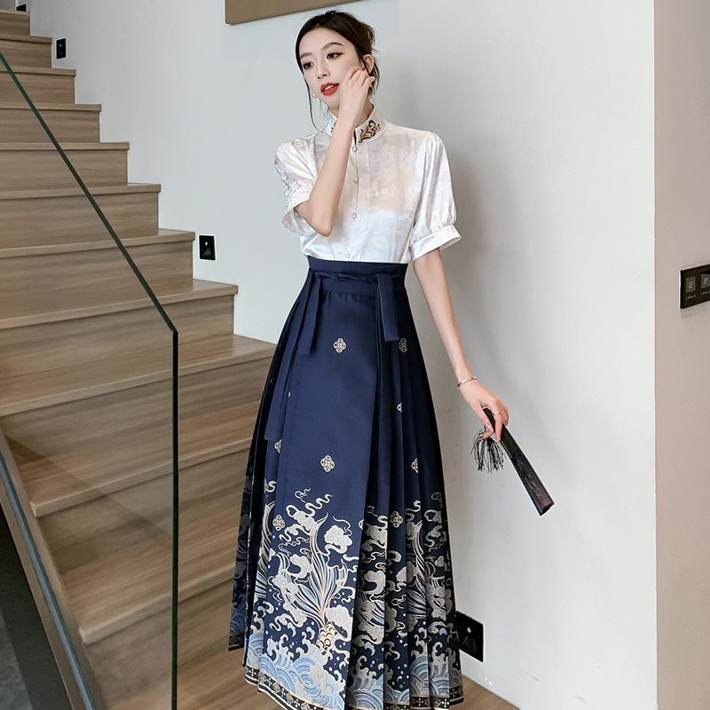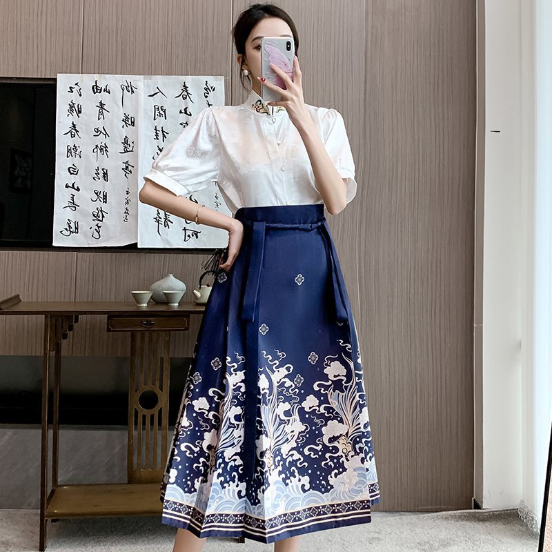 | nameOriginal | New Chinese Style National Style Improved Hanfu Eight-point Short Horse-faced Skirt suit Women's Summer Short Skirt |