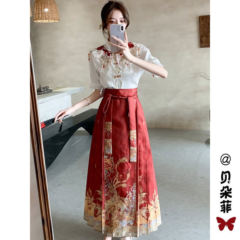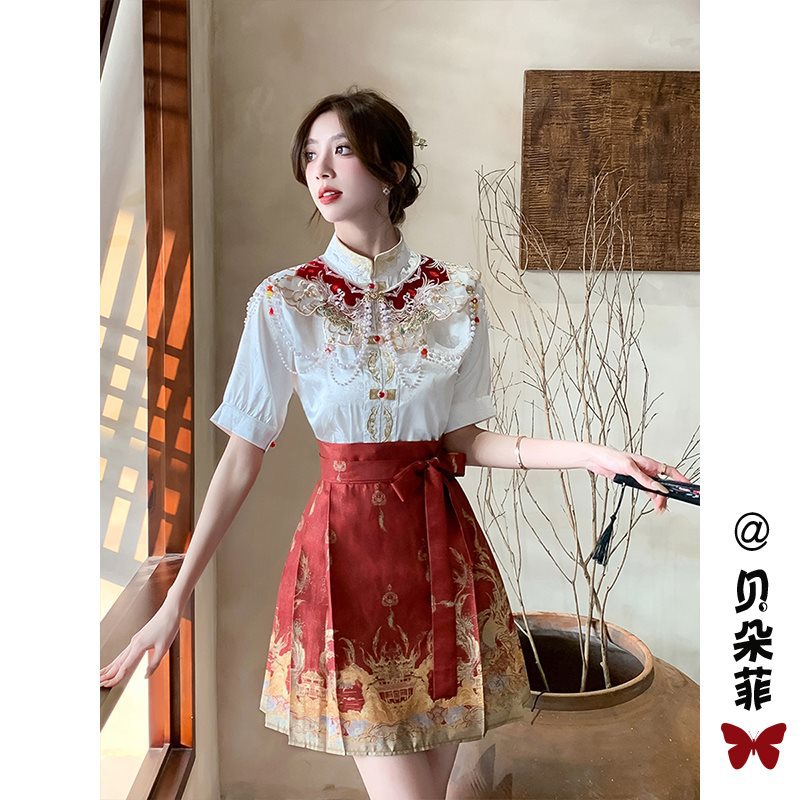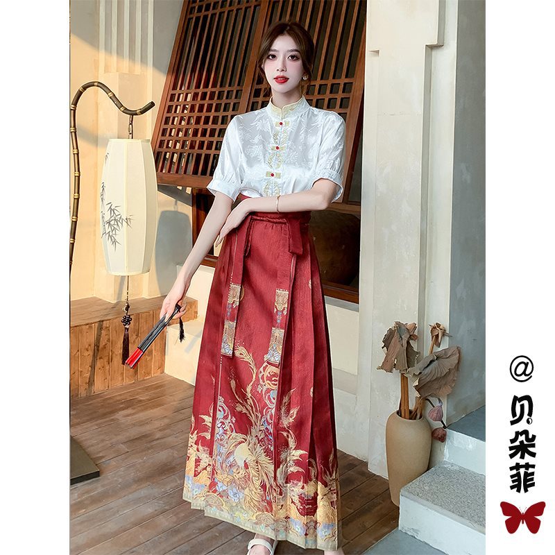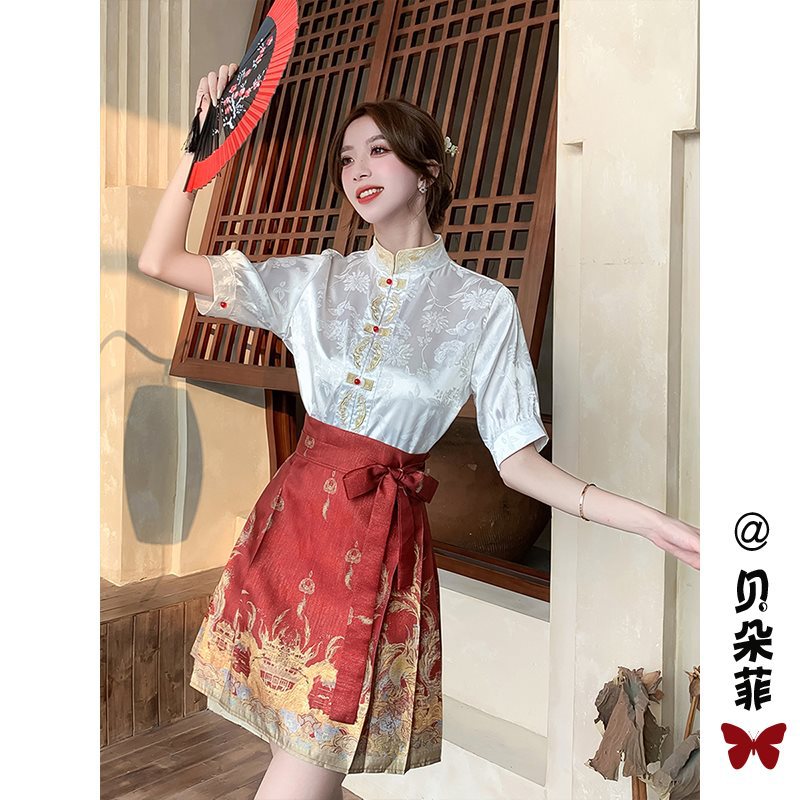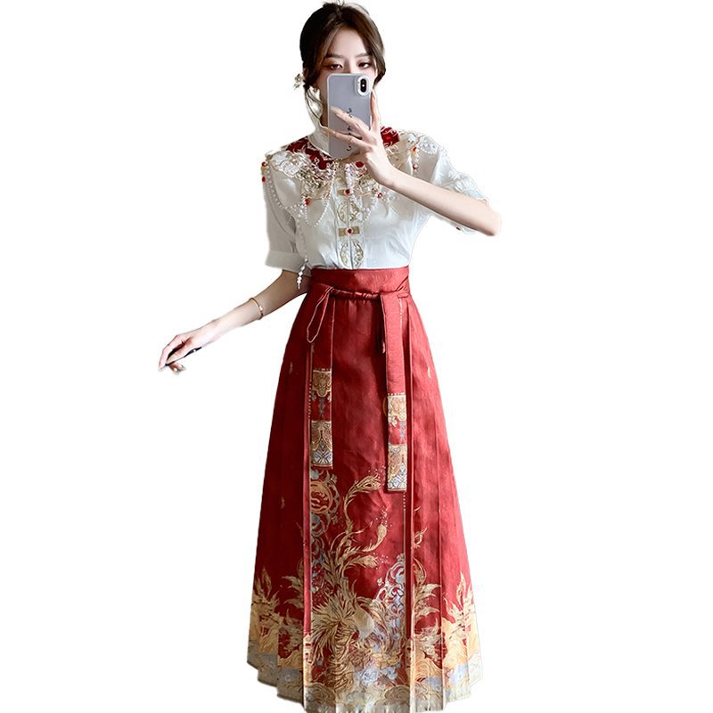 | nameOriginal | New Chinese Style National Style Improved Hanfu suit Women's Summer Small Daily Wearing Red Horse-faced Dress Engagement Dress |