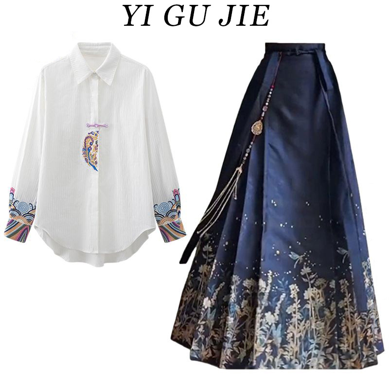 | nameOriginal | New Chinese Style National Style Improved Horse Face Dress Women's Spring 2024 New Casual Design Lapel Long Sleeve Hanfu Shirt |