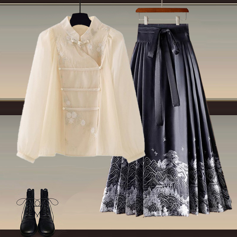 | nameOriginal | New Chinese Style National Style Improved Horse-faced Skirt Women's Spring 2024 New Unique Chic Small Men's Matching Hanfu Shirt |