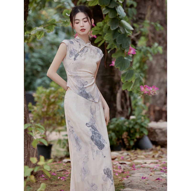 | nameOriginal | New Chinese Style National Style Ink and Wash Dye Cheongsam Top High Waist Skirt Set |