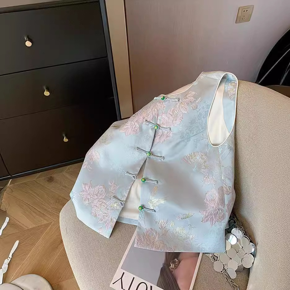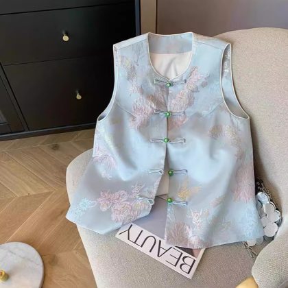| nameOriginal | New Chinese Style National Style Jacquard Round Neck Buckle Sleeveless Vest Women's 2024 Spring and Summer Retro High-end Outfit Waistcoat Vest |