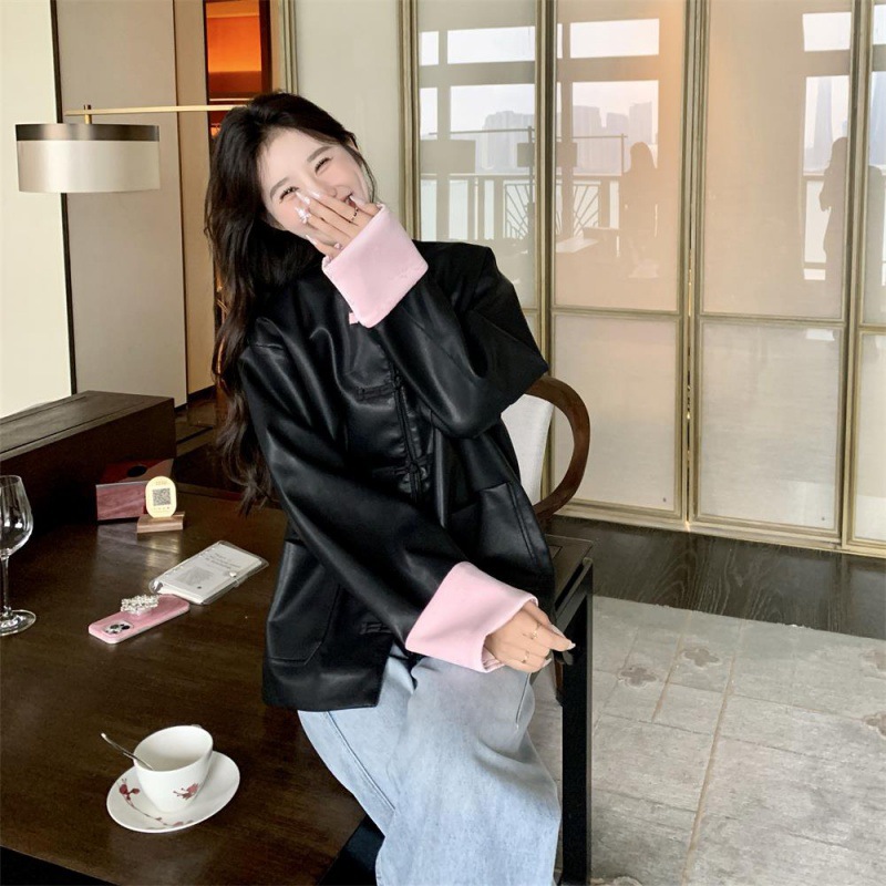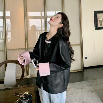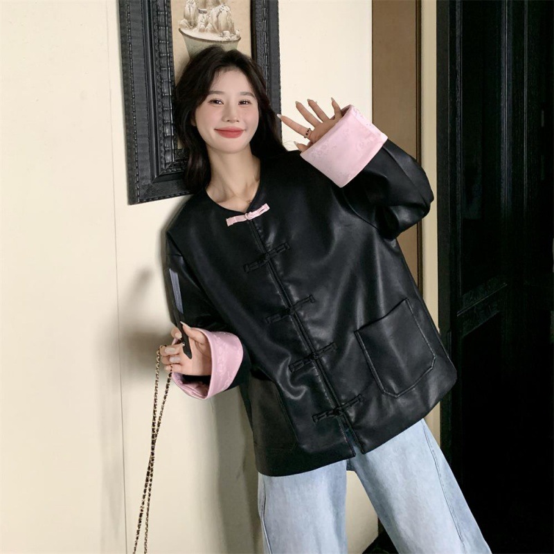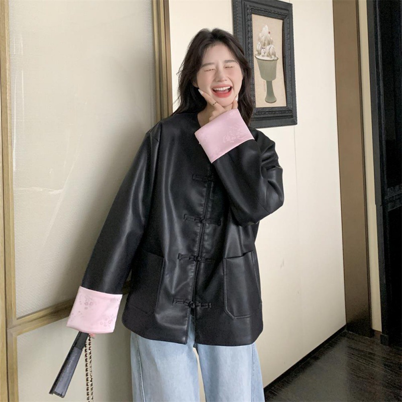 | nameOriginal | New Chinese Style National Style Leather Jacket Women's Spring and Autumn 2024 New Arrival Button High-end Popular Tang Suit Puleather Jacket |