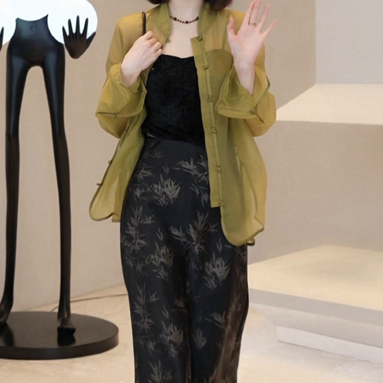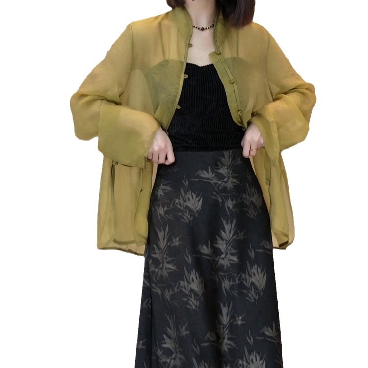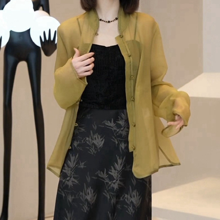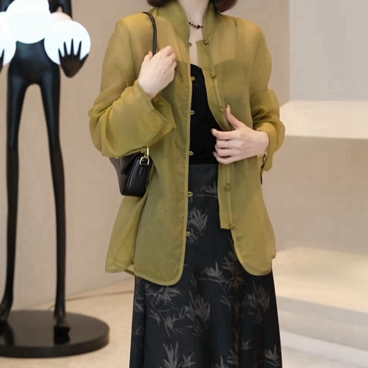 New Chinese Style National Style Mesh Sunscreen Shirt Women's Summer 2024 New Retro Age-reducing Loose Slim Thin Top
